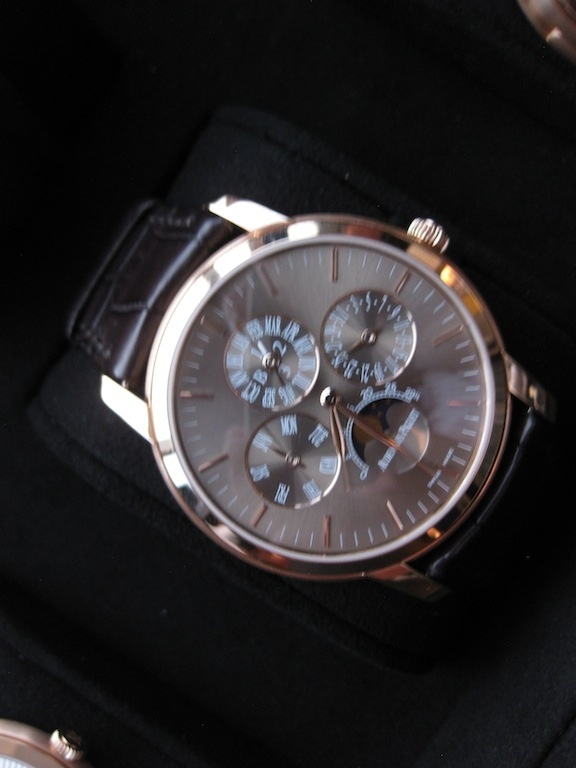 Pink gold Jules Audemars perpetual calendar. The dial color on this one is very unique and it looks outstanding. Kind of a light brown anthracite. Really superb.
