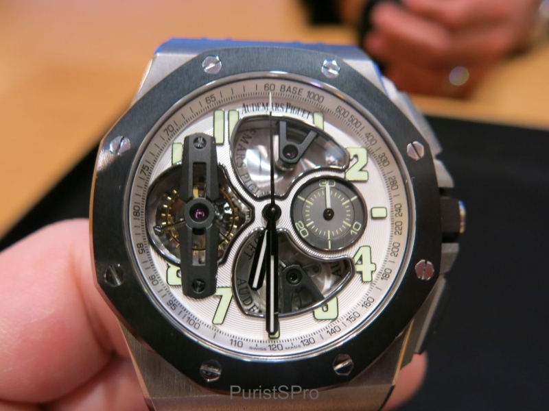 Last but not least, let's review a whale of a watch, the Royal Oak Offshore Tourbillon Chronograph. This version has the titanium case and ceramic bezel.