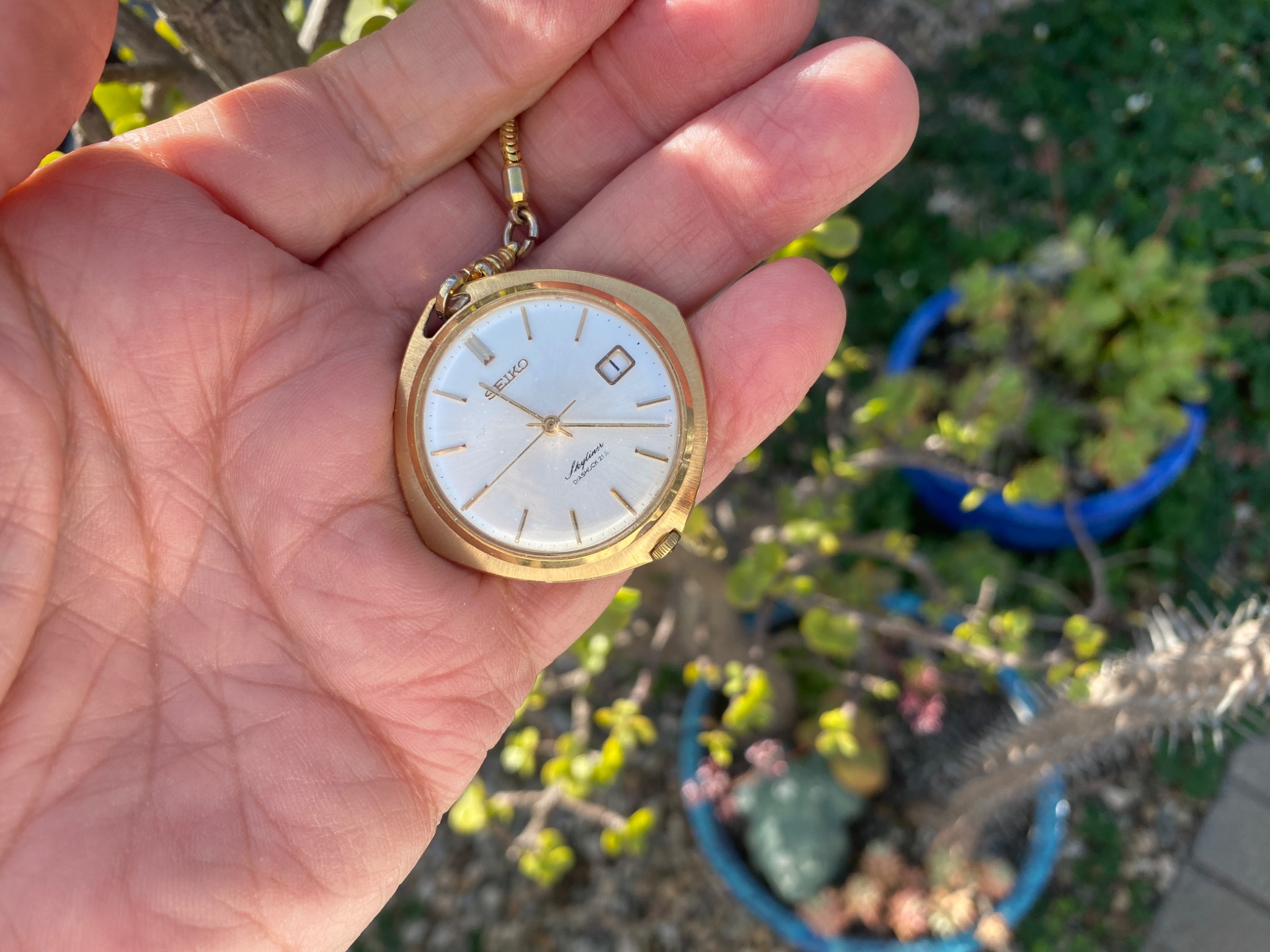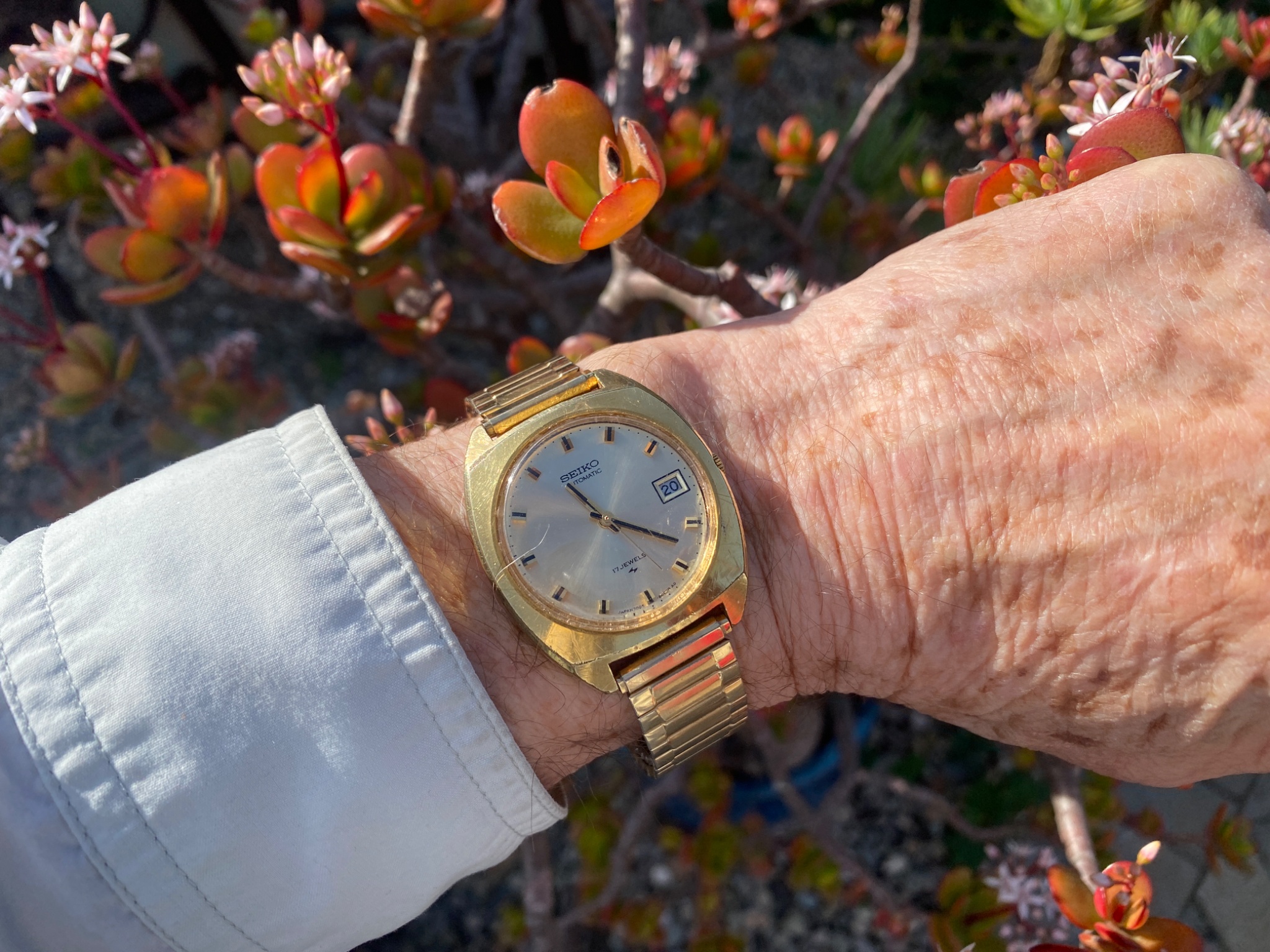 Yes, I know about the date, it’s a manual set by winding around the dial, and my fingertips gave up. These are the last two of my Seiko Gold Tone watches.