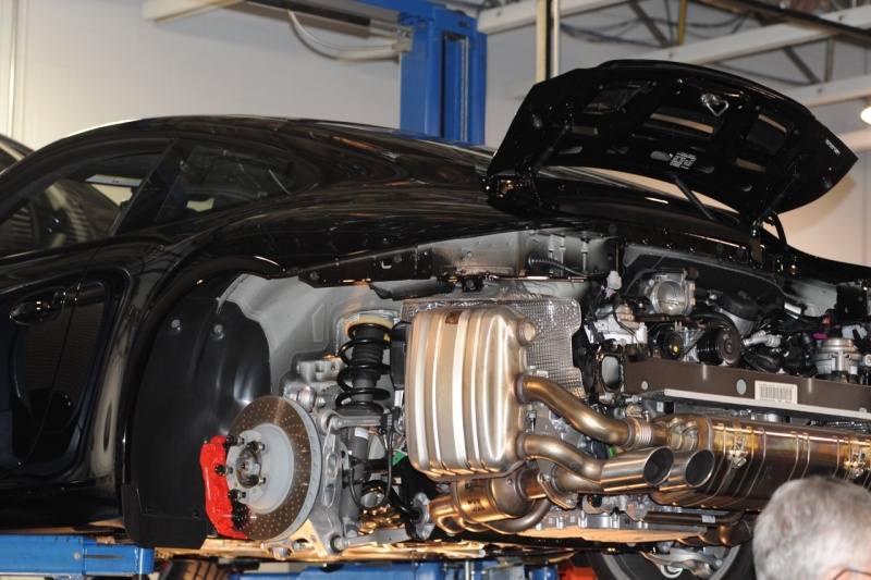 Then, a trip to the mechanic shop where Porsche had another vehicle rigged on a lift with all the bumpers in the back removed.