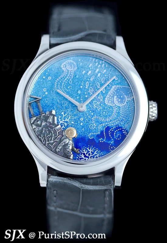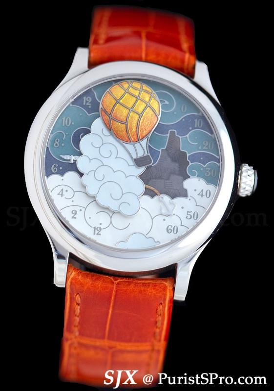 As with recent years Van Cleef et Arpels flagship Poetic Complications for the year is a double retrograde created by Jean-Marc Wiederrecht. The Five Weeks in a Balloon depicts a hot air balloon in enamel lifting off from Zanzibar, inspired by Jules Verne’s novel of the same name. The novel also provides the leitmotif for much of the rest of the 2011 collection.