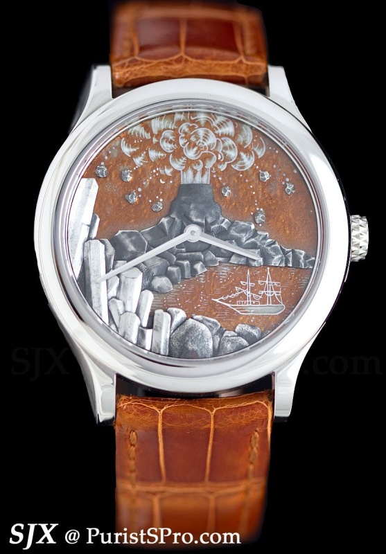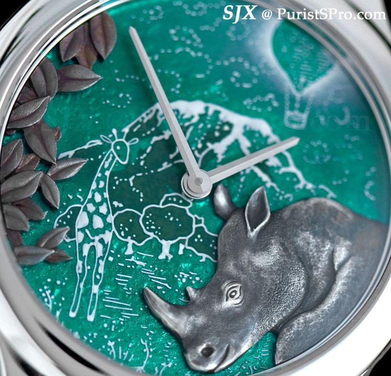 Each stage of the balloon’s voyage from Africa is further explored in the Extraordinary Dials collection. As the name suggests these are jewellery watches with lavishly decorated dials in gold, enamel and mother-of-pearl.