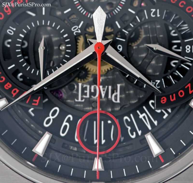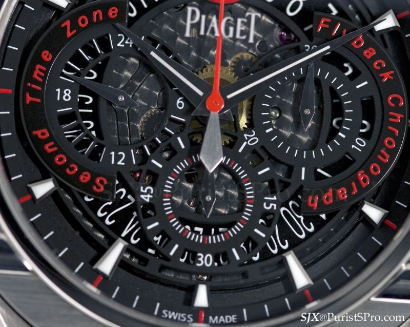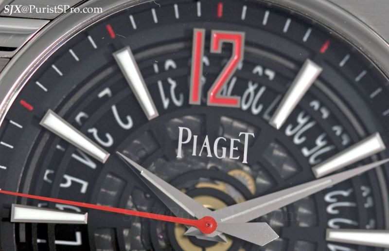 Also receiving a facelift is the well received Polo FortyFive. I spoke positively about this last year – I was wrong as the 2010 edition is even better. Piaget has cut open the dial, exposing the main plate, as well as giving it a liberal dash of red. The hour markers sitting on a track above the date wheel is especially striking. One aspect of the FortyFive I did not like last year was the text on the subdials of the chronograph. With the open dial the text is no longer apparent at all. This is the perfect dial for the watch.