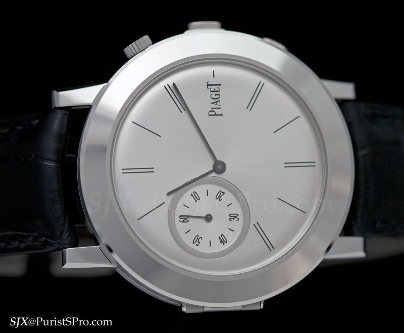 The first version of the new Altiplano is the Altiplano 43 mm with the 1208P movement, available in rose or white gold. Piaget smartly gave this watch a three-tiered dial with the sub-seconds recessed into the lowest level, preserving the overall height.