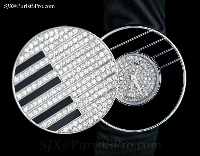 Lastly come a few ladies watches. The first pair is two from the new Limelight Jazz Party collection, a range of watches and jewellery with a musical theme. Both the watches shown are ‘secret’ watches, with dials that are revealed only by sliding away a cover. The second watch is impressively set with sizeable black and white diamonds and would look stunning on a lady’s wrist.