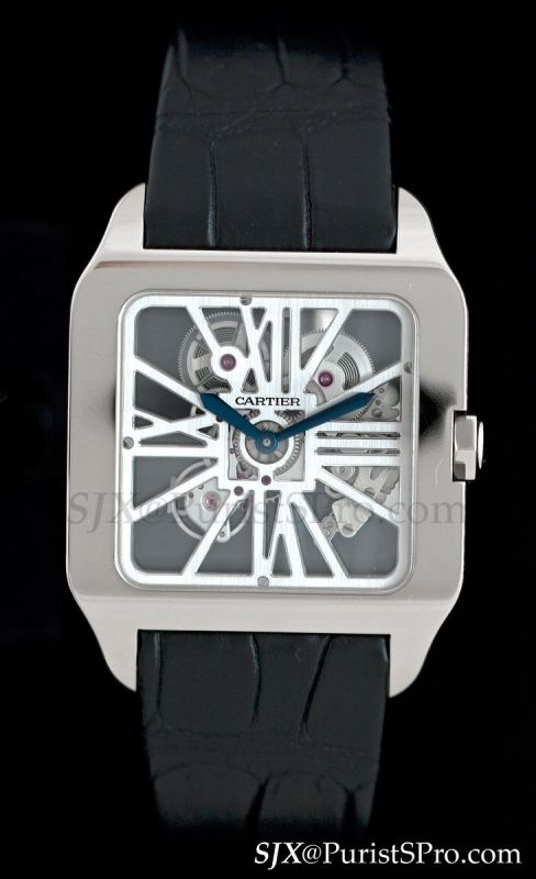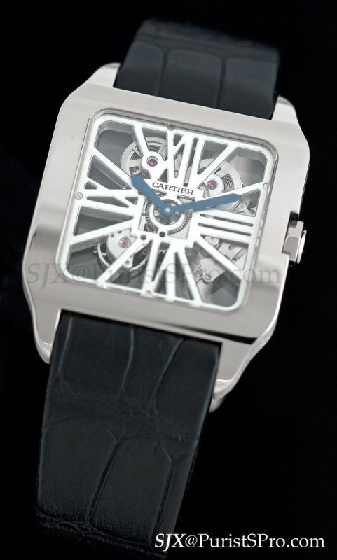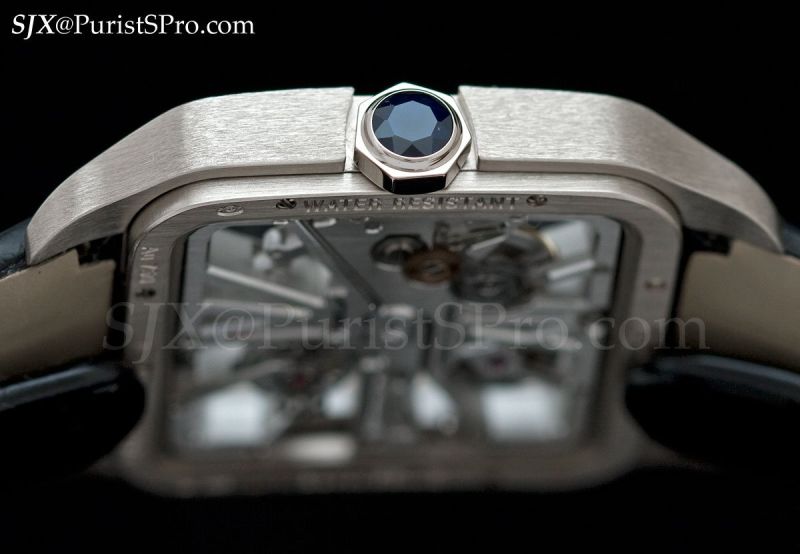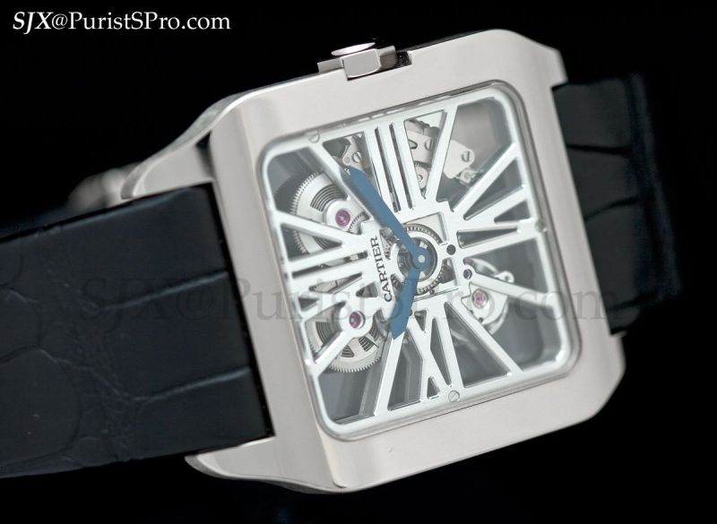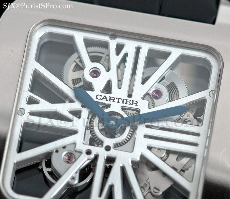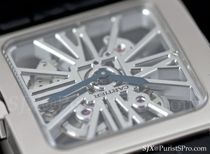 On to the high horology models, beginning with one of my favourites, the Santos Dumont Squelette in white gold. This movement was first used in the Santos 100 Skeleton, which I found disproportionately large and thick for the skeleton movement. Now the movement has found the perfect case in the form of the slim and simplified Santos Dumont.