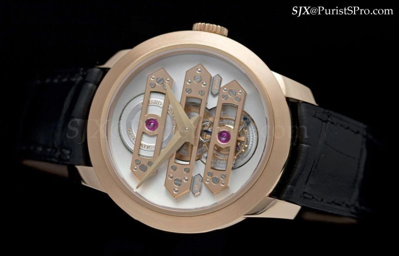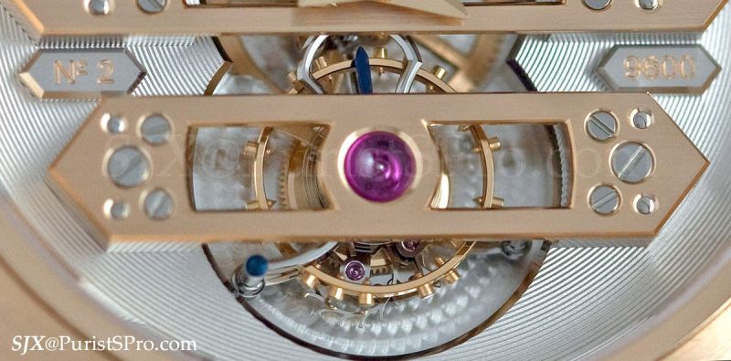 GP has made so many variations of the Three Gold Bridges tourbillon I’ve lost count. Yet it remains iconic because it is visually stunning and representative of the brand. And so predictably the flagship new product for 2010 is another variation of the celebrated Tourbillon with Three Gold Bridges.
