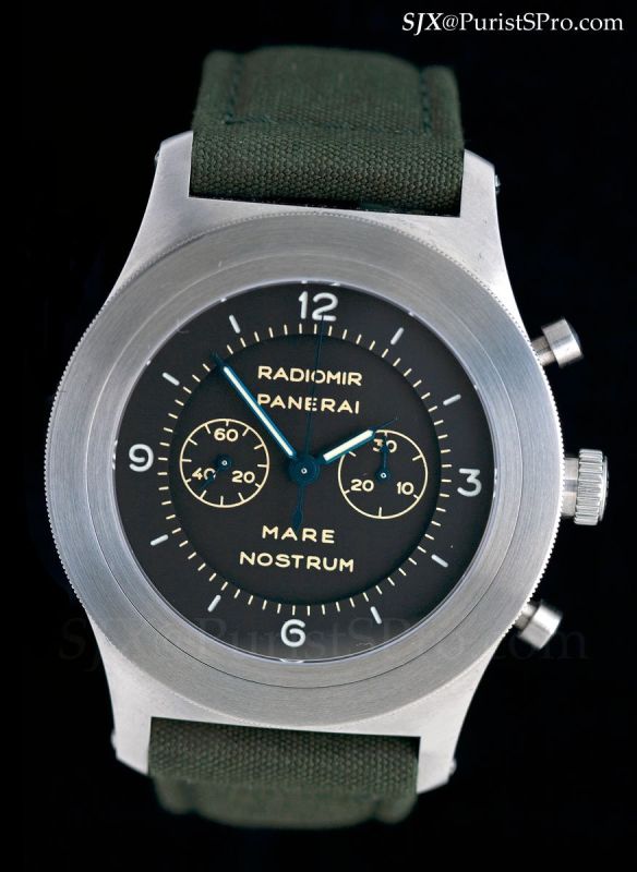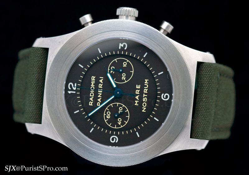 The other special edition is the Mare Nostrum chronograph. Last year saw the launch of the ridiculous 60 mm Egiziano. Panerai followed up this year with the 52 mm Mare Nostrum. Logic would dictate such watches are made for sitting in a display case, unless you’re Sylvester Stallone, but then logic isn’t present in the Panerai pear wood box.