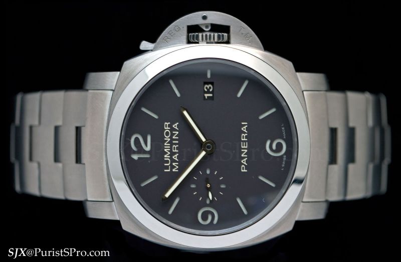 Last is the PAM323, a 10 Days GMT in a 47 mm, steel Radiomir case. Silver hands and a steel case make this plain in appearance but it’s not a bad looking watch. A titanium version will eventually come along anyway.