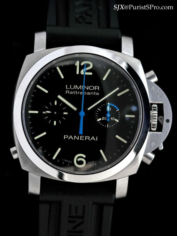 The primary thing that struck me about this year’s Panerai collection is the seemingly liberal use of faux vintage ecru luminova – which works terrifically for the Panerai aesthetic. 2010 is a good year for Panerai, it never has bad years, and this year’s collection is led by a pair of complications that are startling.
