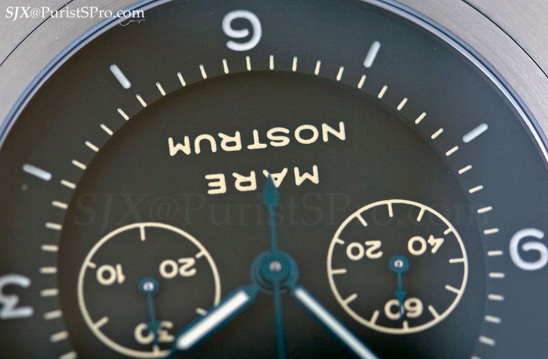 That being said, the Mare Nostrum is a magnificent watch to behold. This watch is modelled on a deck watch prototype of the Second World War era and Panerai did a superb job in recreating the look and feel of a vintage watch, right down to the drab green strap. Not only does the dial look old, but so do the blued steel hands.