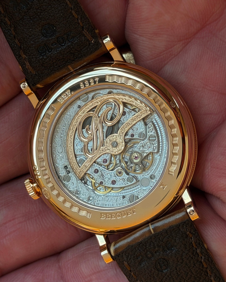 I've only seen the lugs on the anniversary models in photos, and they look nice. However, I do think something is lost without the traditional Breguet Classique straight welded lugs and cold rolled fluted case band, as was the case when Breguet abandoned the florid hand engraving on the caliber 502-based movements for more conventional côtes de Genève and guilloché rotors. Based on the engraved movement and the details on the moonphase display, I much prefer the 5327 to the otherwise nicely updated 7327.