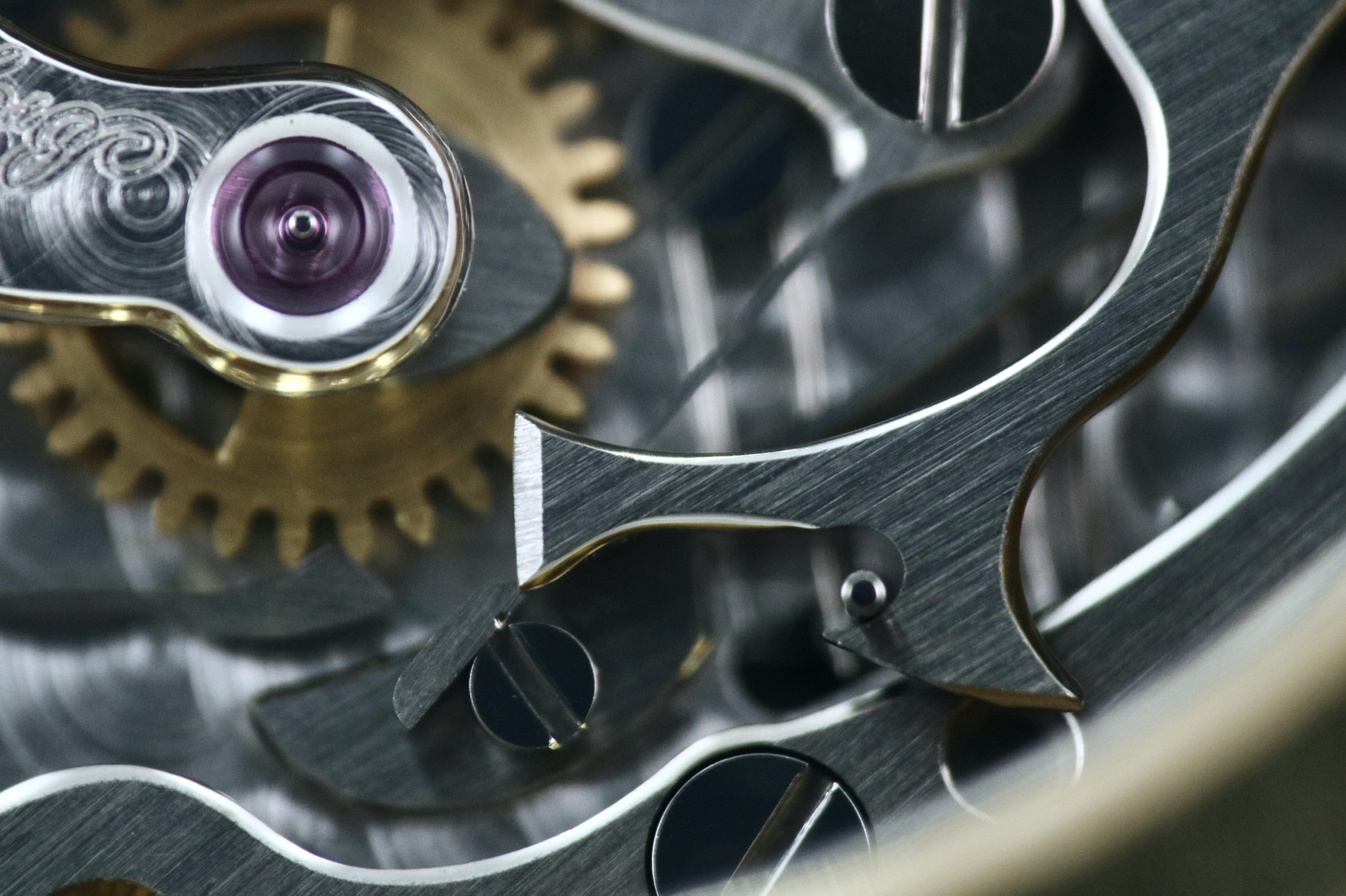 The craftsmanship and finishing of the parts are exceptional, characterized by a wide beveling on the edges that highlights the intricate detailing of the components. Each screw head has been meticulously black-polished, a testament to the watchmaker's precision and dedication to achieving a mirror-like finish that reflects light with remarkable clarity. The entire split-second mechanism, including the wheel, clam, clam jaws, and other critical elements, is also black-polished, adding to the visual harmony and sophistication of the movement.
