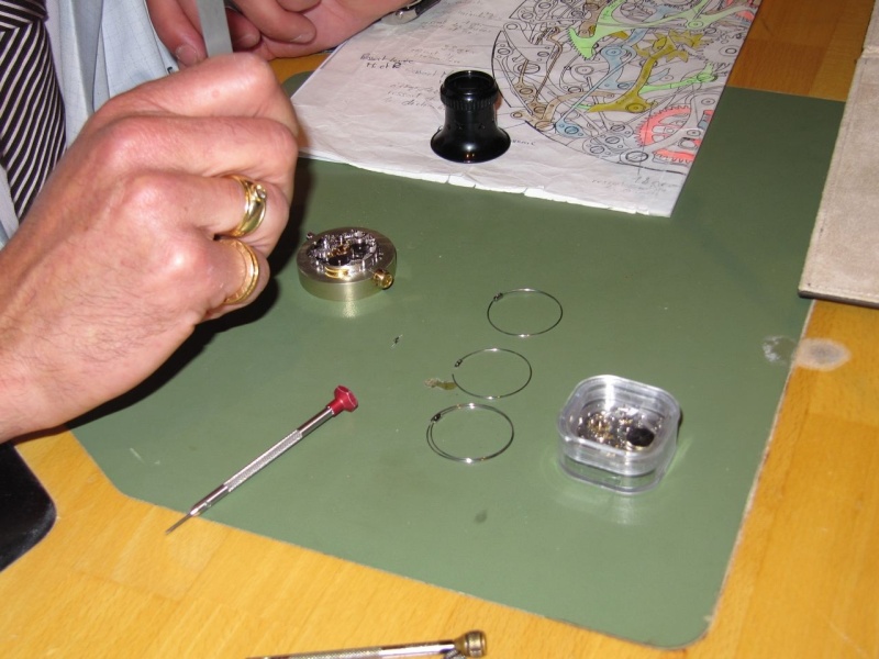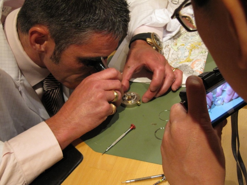 Mr. Pascal Legendre working on the movement and displaying the 3 gongs.