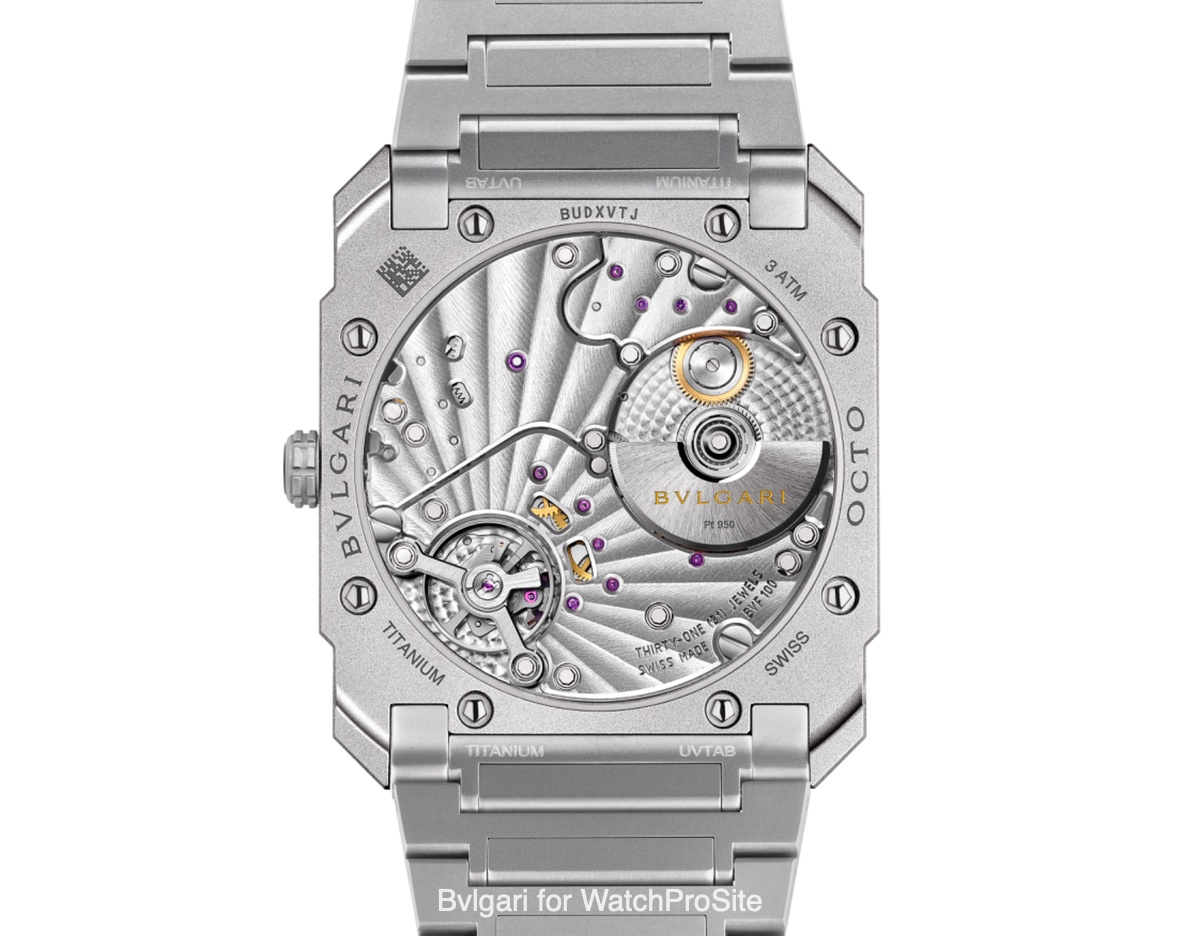 First, the movement....referenced BVF100 the micro-rotor automatic movement is designed, developed in Le Sentier, measures just 2,35 mm thick helping the entire idea of 'Thin Octo Finissimo'.