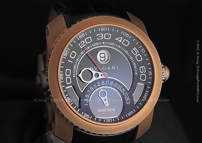 I find the Bulgari variant very clean, but I think the design may be a a little "too safe". Bulgari should have been a tad more daring with the redesign, and my suggestion to them is to bring back the red colored numerals on the hour disc. I think this added slight splash of red on the hour disc numerals would give the Bulgari Gefica the extra "umpf" it needs for me to like it as much as the original Gerald Genta version.
