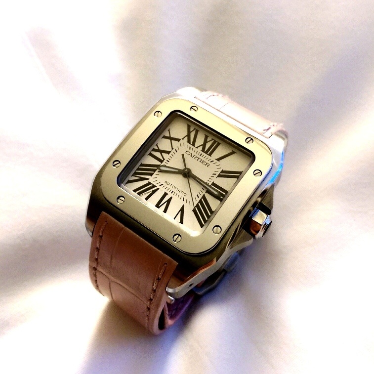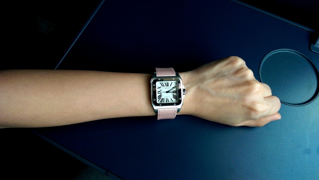 This time, it was the Cartier Santos 100 that stole my wife's heart. For some reason that I don't know, the Santos 100 Medium with pink strap is not easy to find in ADs. Only boutiques have it sold at the fixed price. I've requested the AD of my acquaintance a few times about the watch, but they just did not have it in stock. So when we saw the watch at the Duty Free, I told my wife that it is time to go for it.