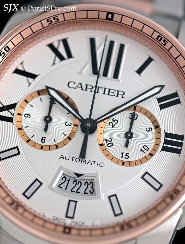 The second trend is obvious, and something that is happening across the industry. In-house, or manufacture or whatever you wish to call it, essentially not ETA, movements are slowly making their way across the mid-range collection. The new Calibre de Cartier chronograph with the 1904CH-MC, with a price of about US$11,000 for the basic steel model, is a good example of this. And future releases, perhaps during 2013, will also use the 1904 MC.