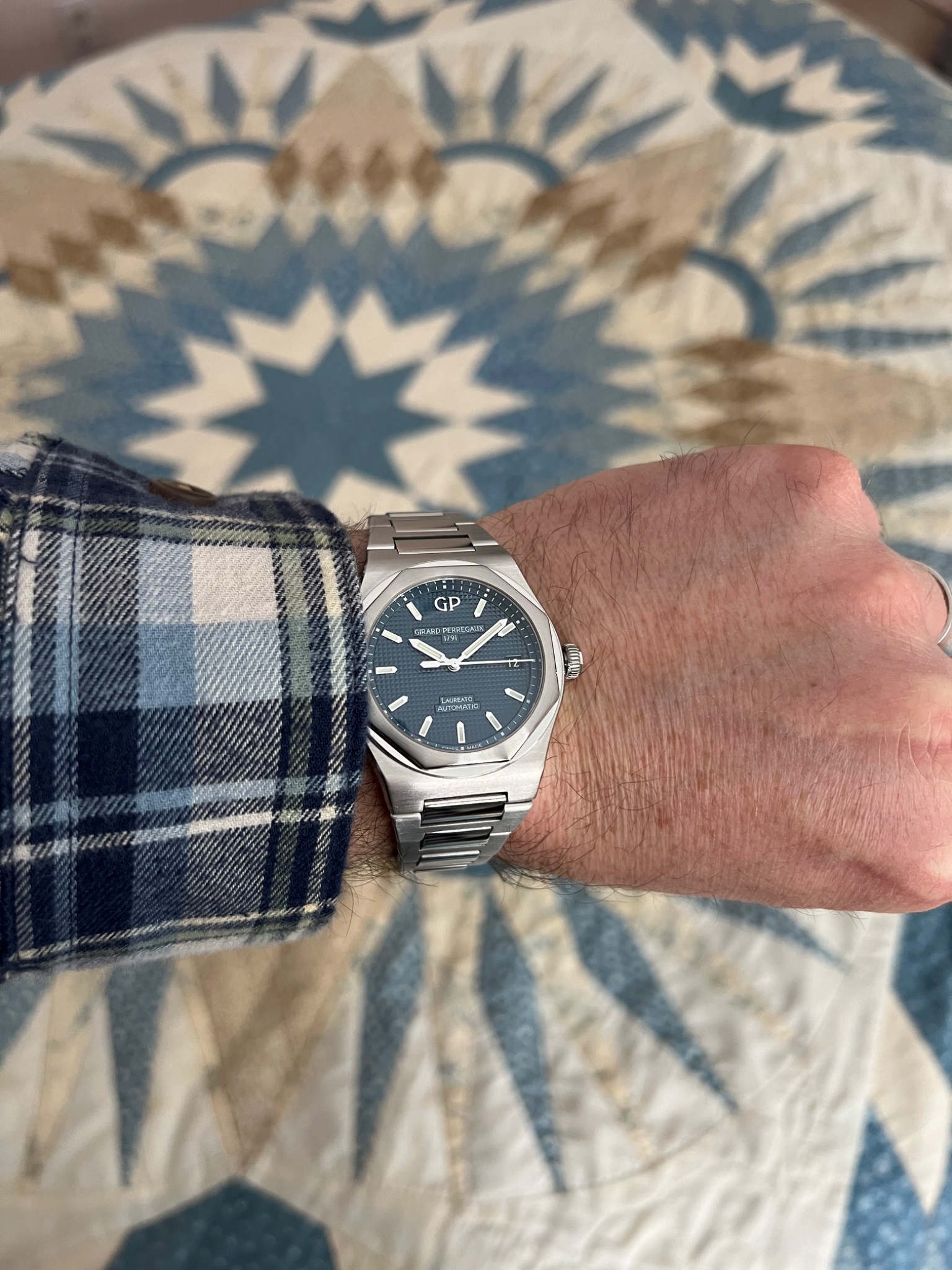 I wish that I had your shirt, cool pattern and perfect with the Chopard!