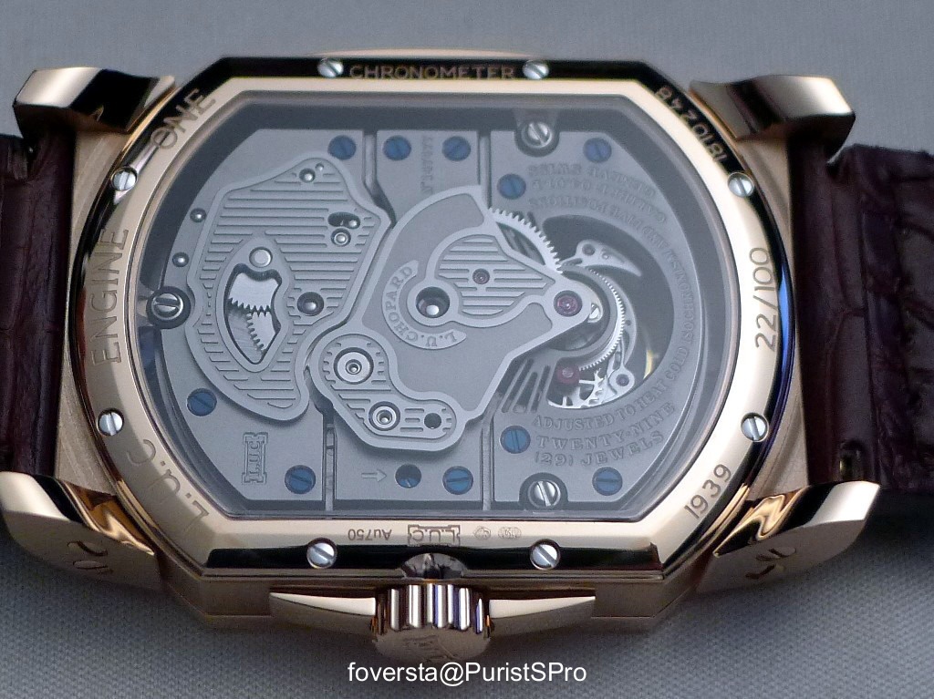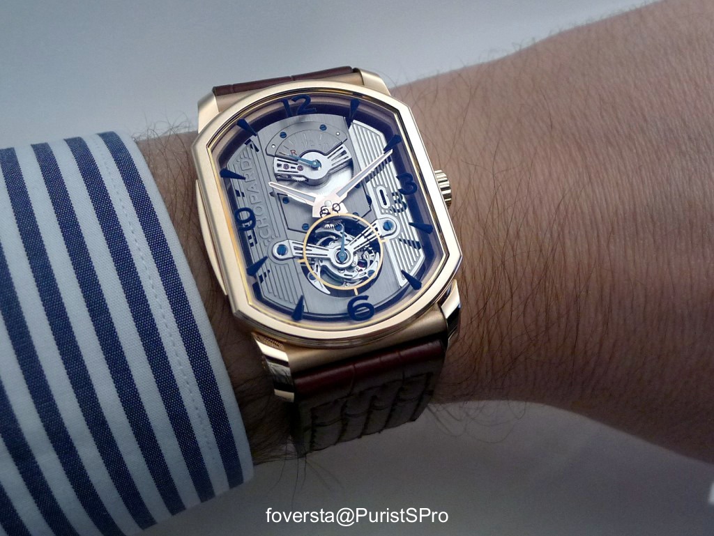 The unusual case shape, the finishings, the way the Tourbillon is displayed, the movement lay-out, it is full of details which make it very appealing!