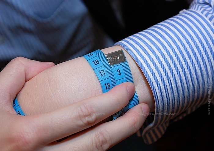 And "Ms J's ' wrist-size is 165mm (6.5 inches), the median of the three volunteers