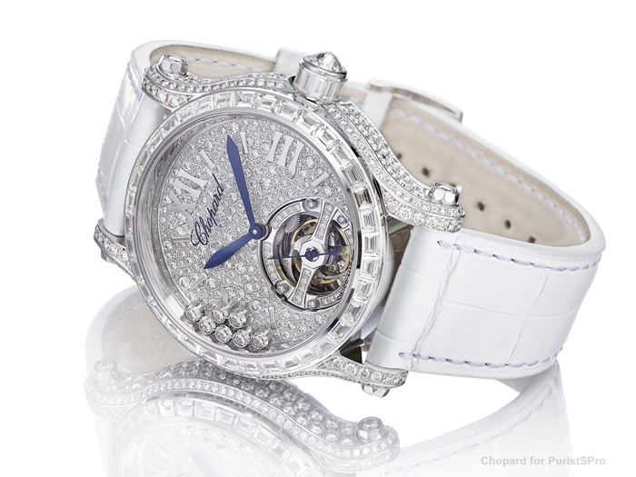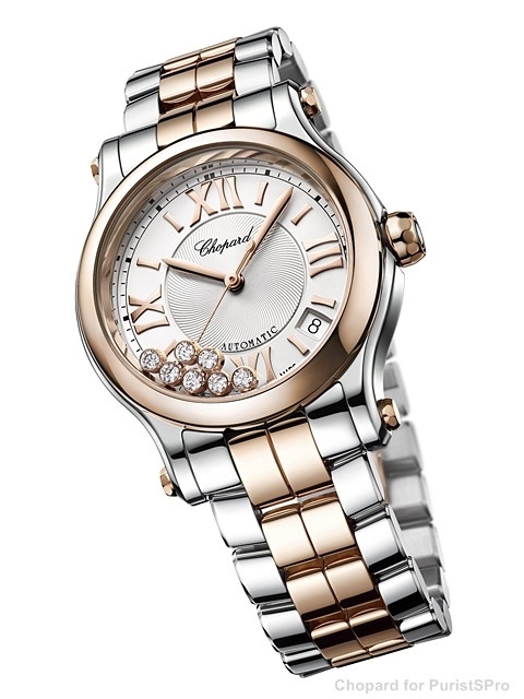 Explore Chopard's ladies' watches, including the Happy Sport Automatic and Imperiale series, blending bejeweled aesthetics with mechanical movements.