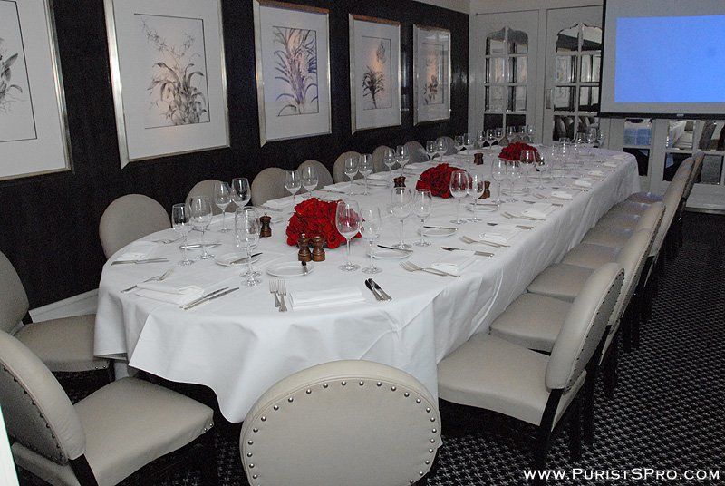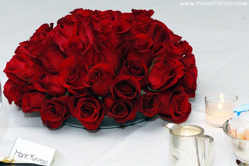 Table was immaculately set with rose centerpieces which were offered to any guests who wanted to take them home at the end of the night.