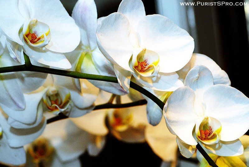 The entire room had pictures of orchids on the walls, and the above orchid plant had numerous bulbs and was a elegant and beautiful sight to see.