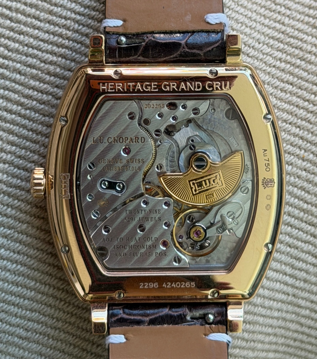 Prior to the Heritage Grand Cru, I owned an early production LUC Regulator GMT in white gold and a more recent LUC Quattro in rose gold with a brown dial. Shaped watch fan that I am, the Heritage Grand Cru is the LUC I eventually kept.