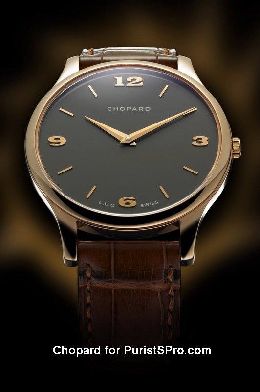 white gold with a slate-grey dial, complimenting the L.U.C Haute