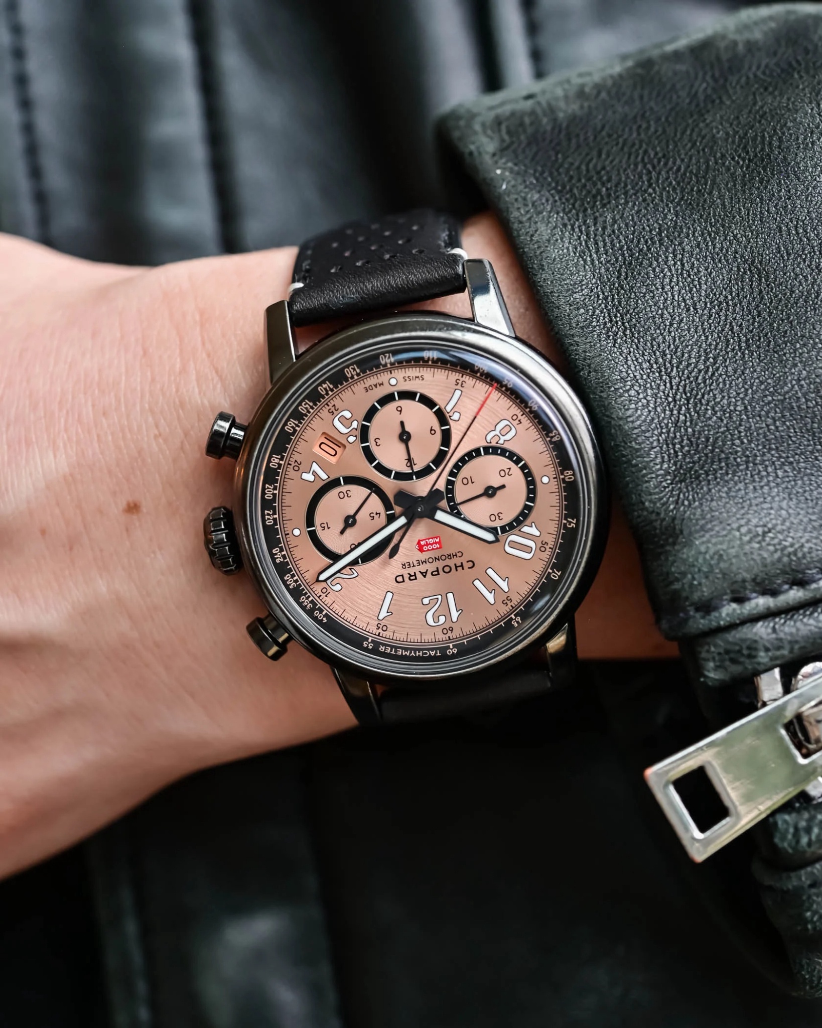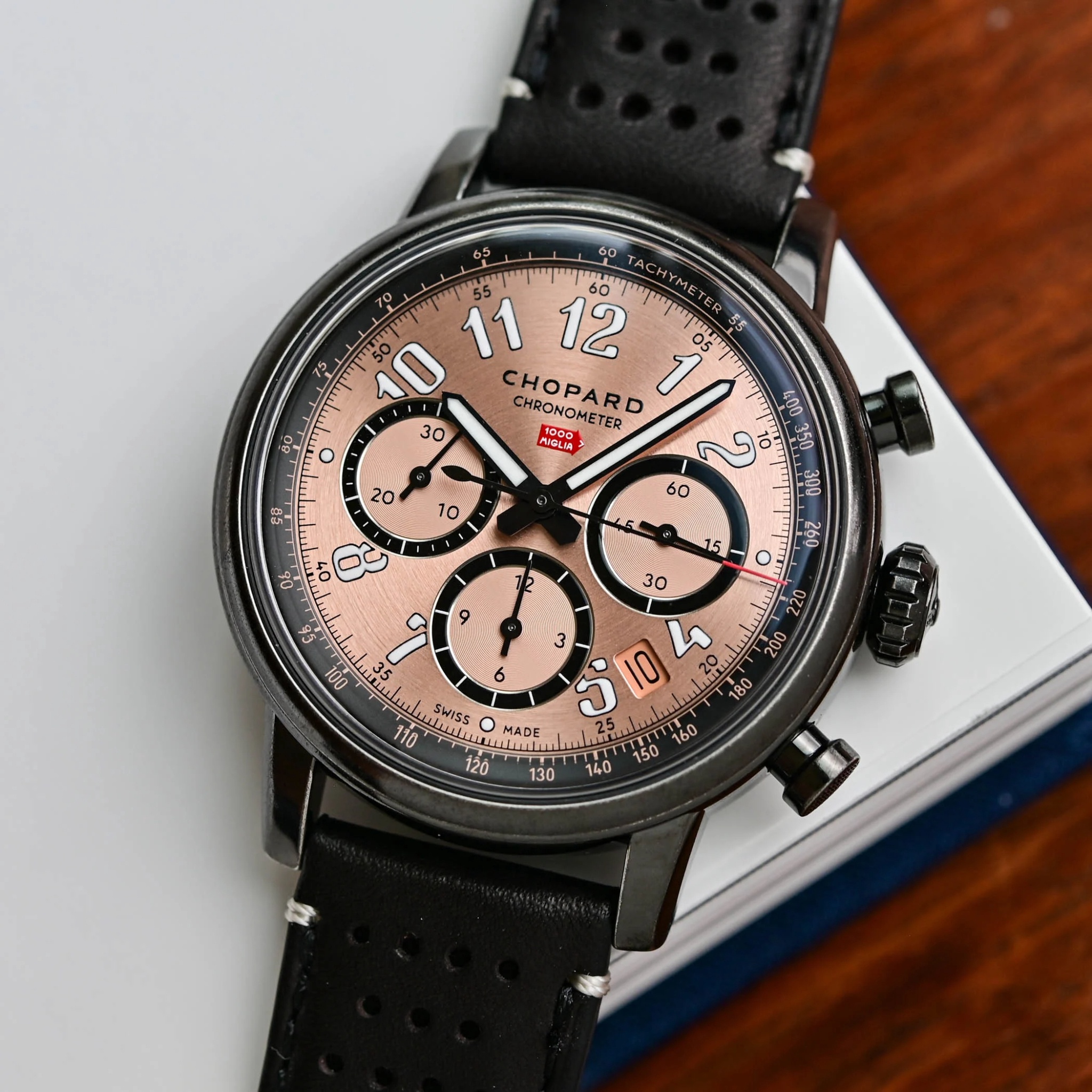 Highlighting the retro spirit of Chopard's classic chronograph, the Mille Miglia returns with a patinated vintage finish and a vivid, attractive salmon dial. The date lives on...π ...