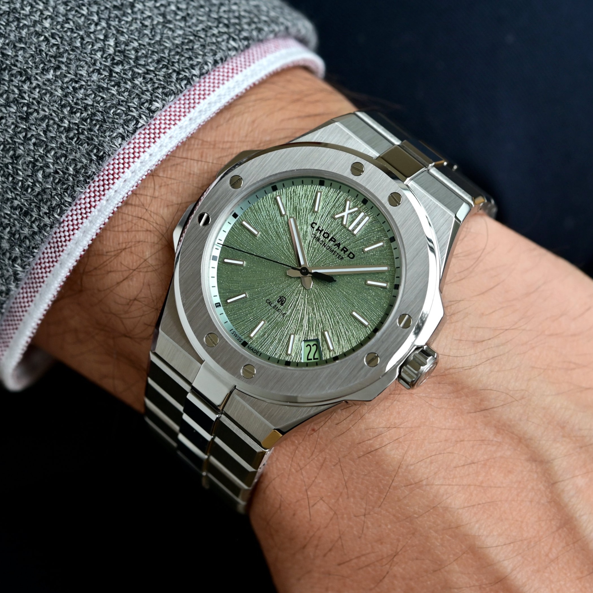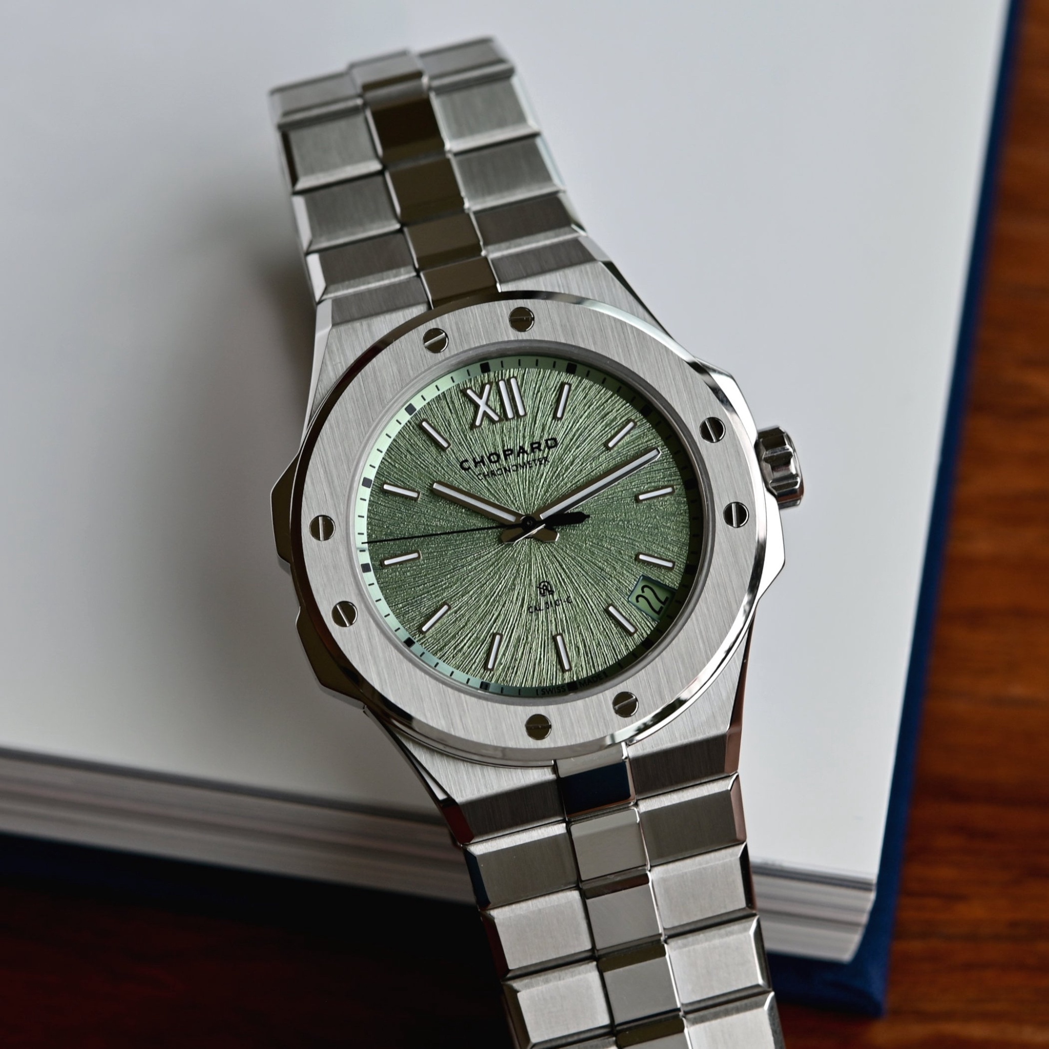The “Moss Green” dial is supposed to evoke the natural glow of a soft bed of moss found along woodland paths in the Alps.