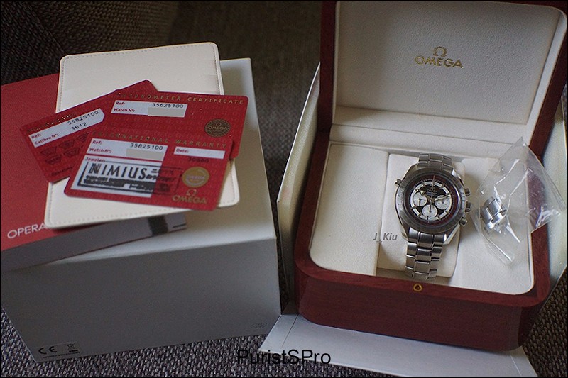 I have for sale an Omega Speedmaster Co-axial split seconds. 44.25mm steel case size with Omega 3612 automatic coaxial movement. The watch has the two-tone “panda” dial and comes on its original steel bracelet. The condition of the watch is 90% excellent, with minor signs of use from normal wear, one tiny micro ding on the bezel. Comes with box, warranty card and full bracelet links. Original retail price is US$15,000. My price is a very reasonable US$4,150 shipped with full insurance. I am located in Hong Kong. Plenty of international references available on request. Payment via bankwire ONLY. Price includes shipping worldwide. No trades please. I reserve the right to give priority to buyers with whom I have dealt with before. Please feel free to PM or email me with any questions. Lots of additional photos available. Thanks for looking Jonathan