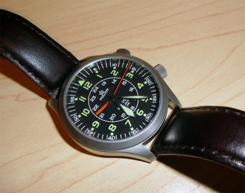 Up for sale is a stainless steel Poljot Aviator limited edition. This is number 424/999. The watch is a manual wind with an alarm. The case is a good size at 40mm in diameter by 47.5mm lug to lug. The watch is used, but is virtually spotless. The only signs of wear that we can find are on the strap. This watch is being sold without box and papers. We are looking for $199. The watch is keeping great time and has a loud alarm. If you have any questions, please let us know. With kindest regards, The Accoutre-Montres Team.