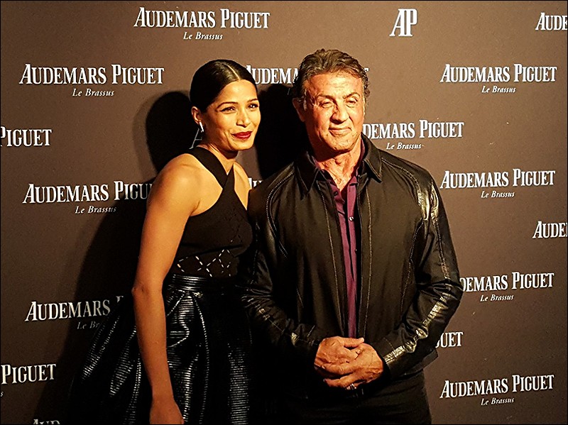 Here's actor Slyvester Stallone with AP Brand Ambassador & actress Freida Pinto.