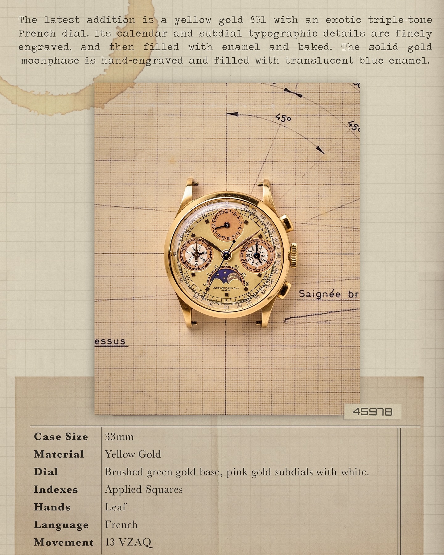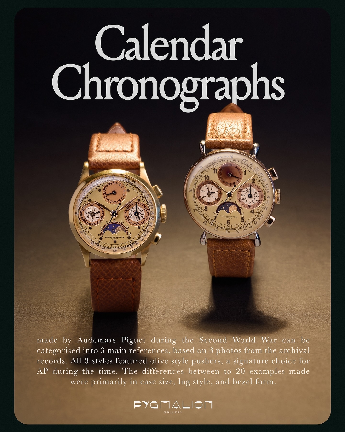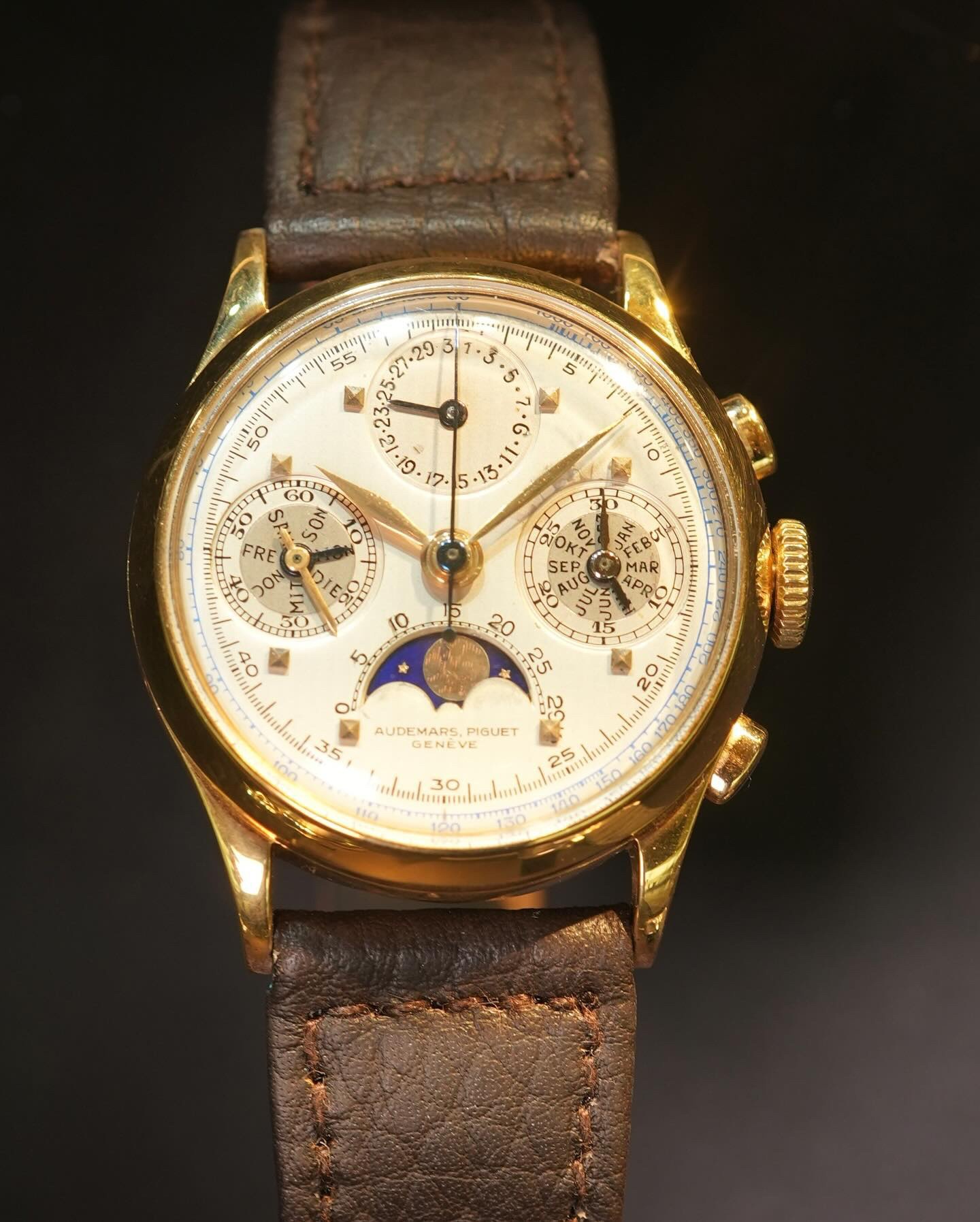 The 20 Triple Calendar Moonphase Chronographs powered by 13VZAQ calibers produced by Audemars Piguet during the Second World War (from 1941 to 1943) are among the most interesting and beautiful timepieces I know.