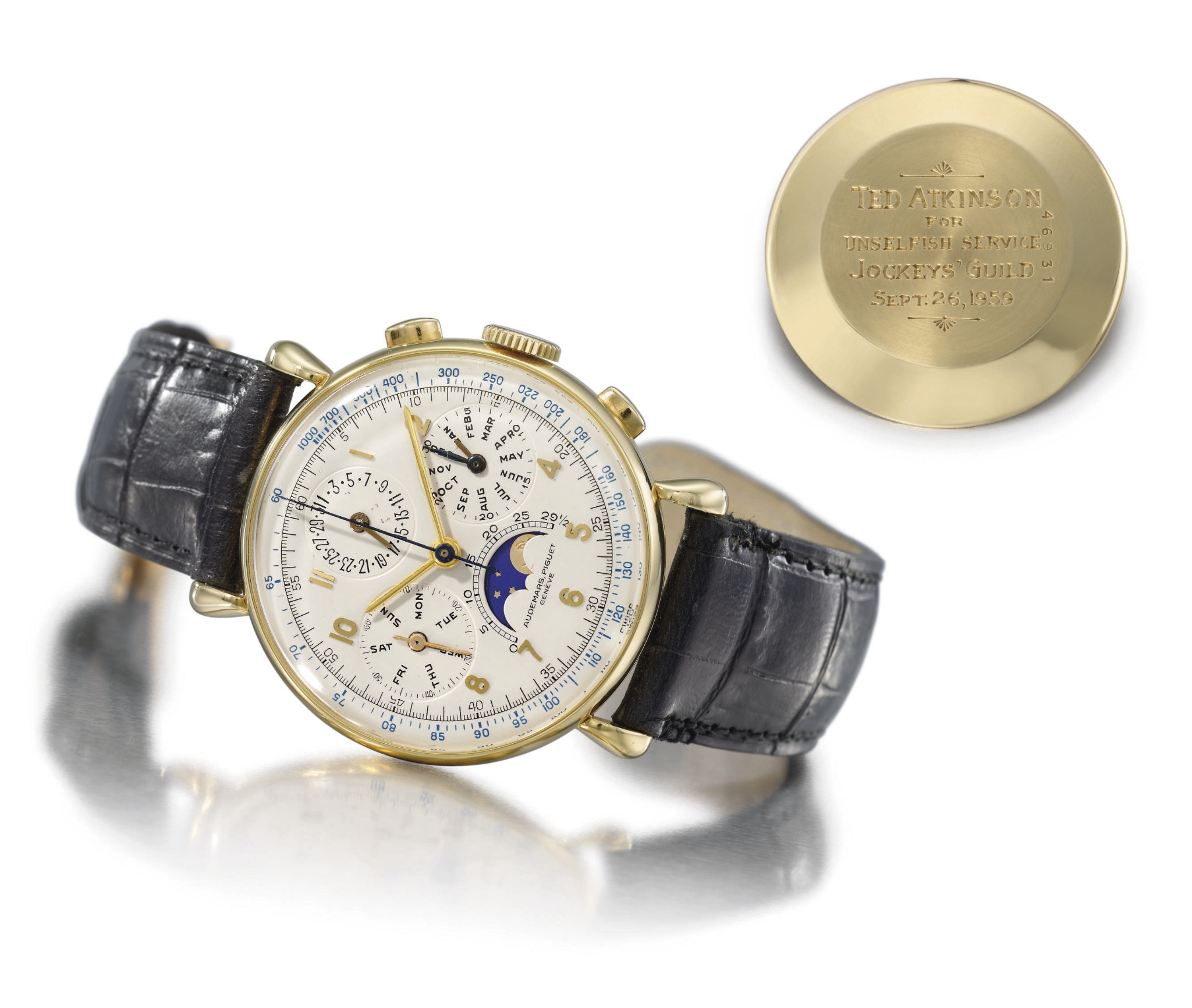 According to the records of Audemars Piguet, the present watch was sold in 1949 to the US. It was returned to Audemars Piguet for a servicing in 1993.