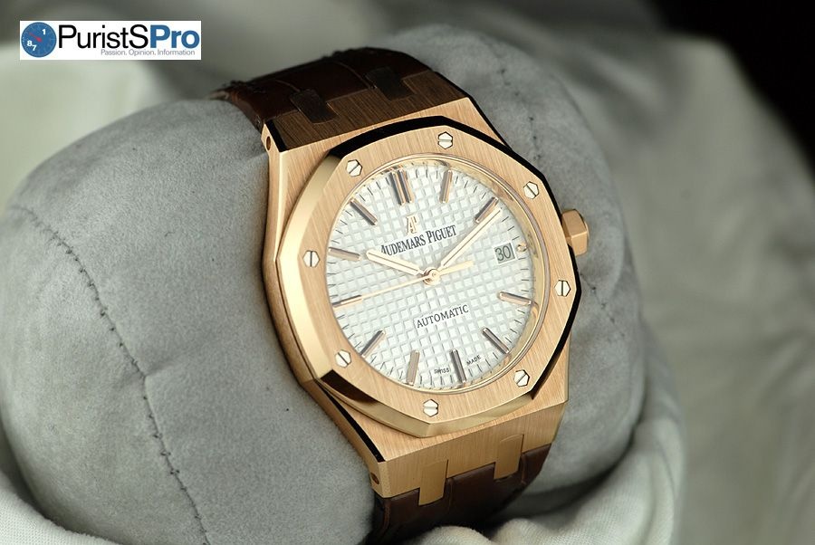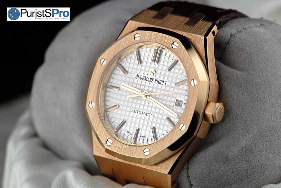 The 37mm Royal Oak 15450 retails for $16,300 in stainless steel and $31,000 in pink gold.
