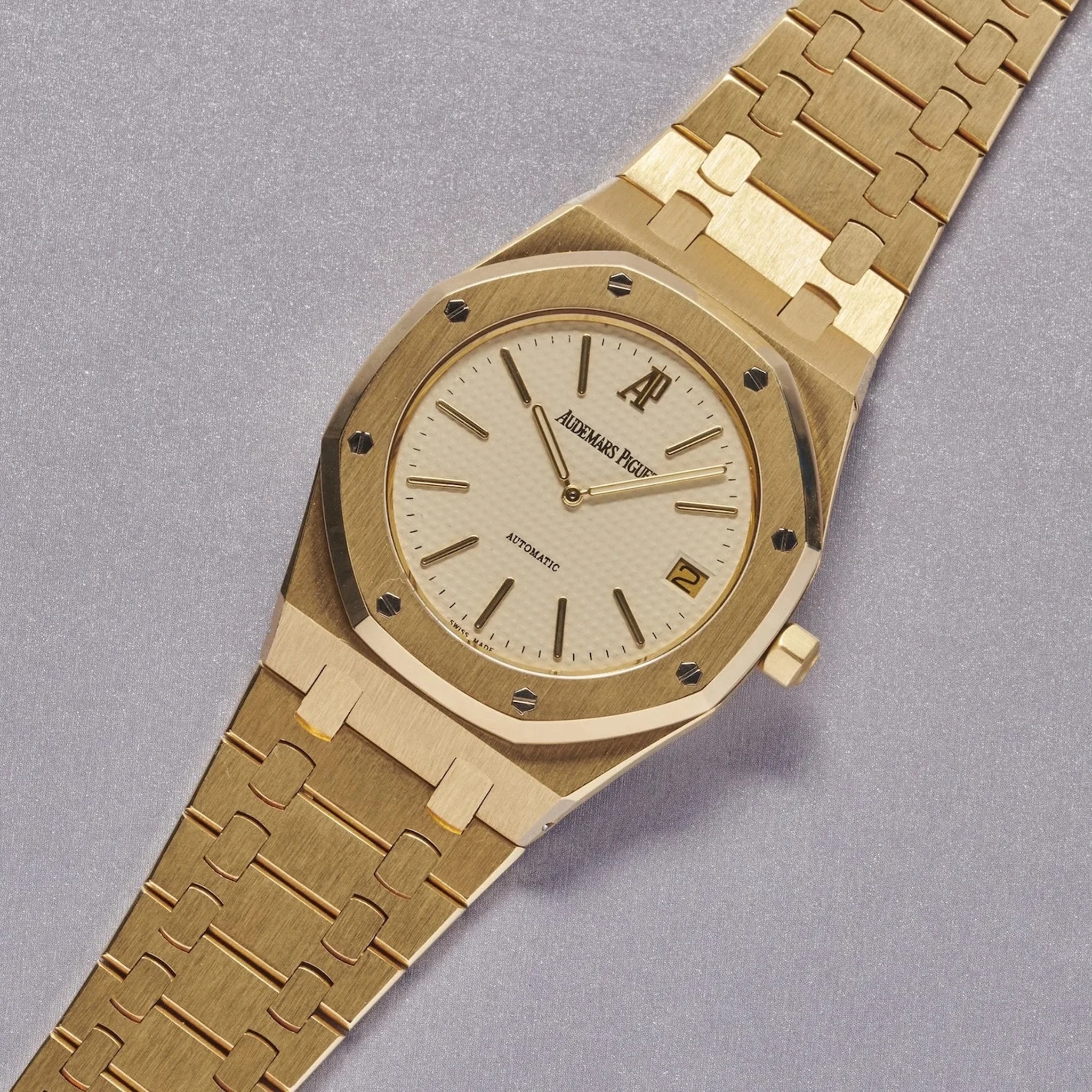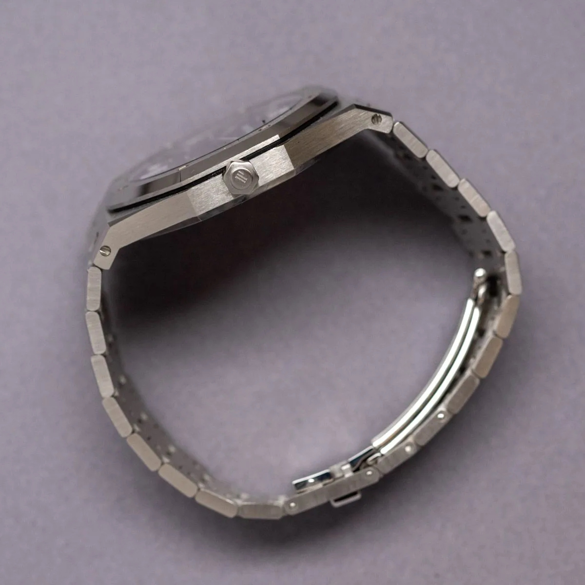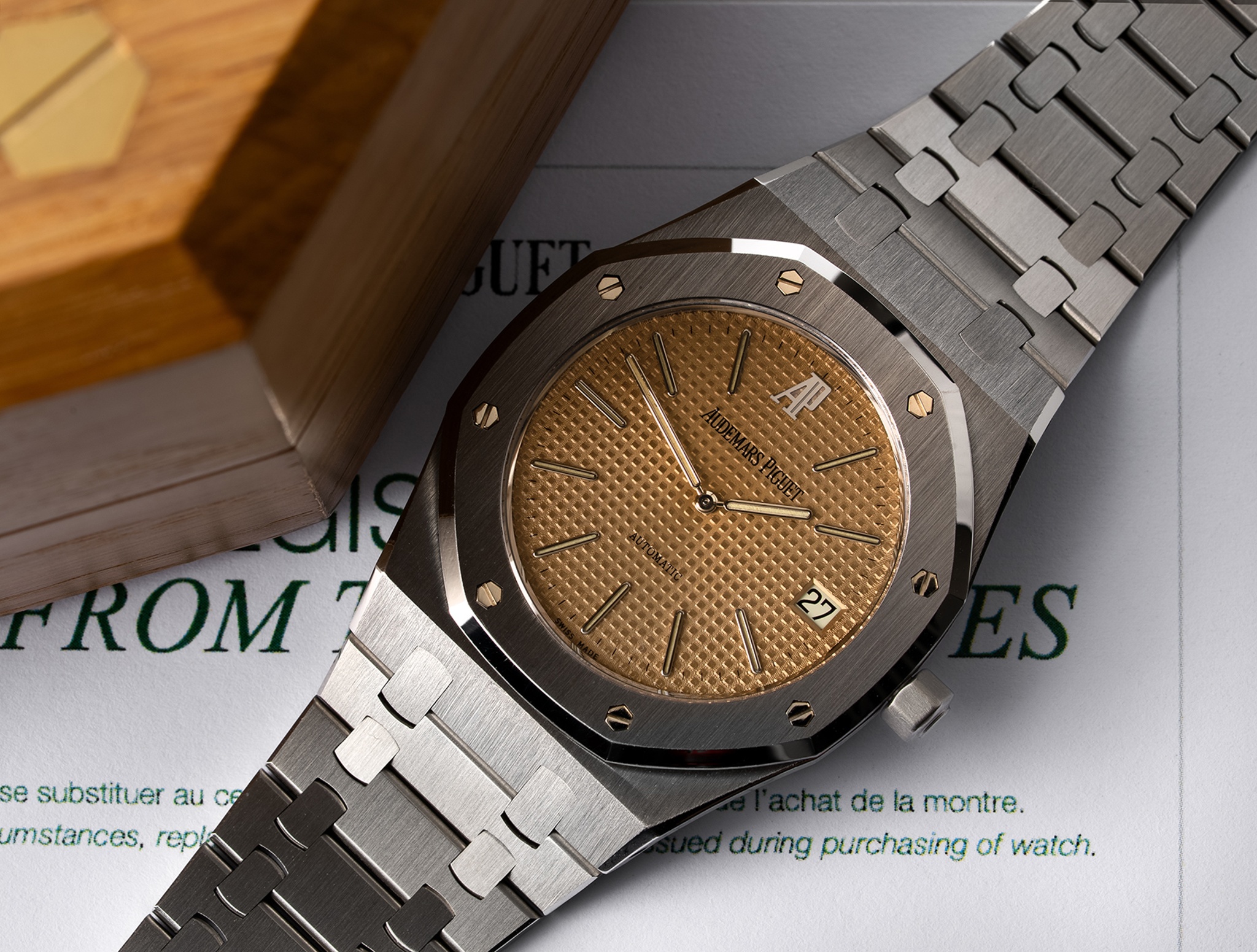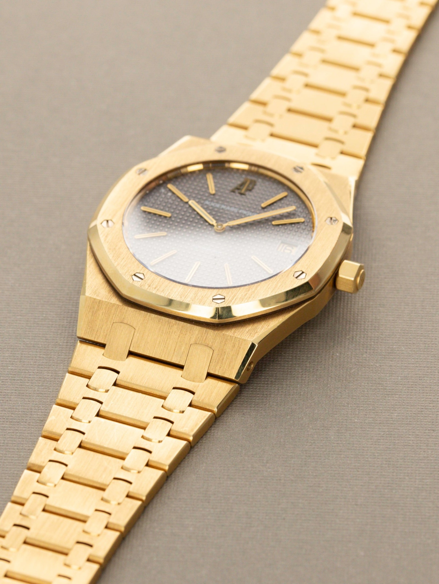The Royal Oak reference 5402 is recognized as the original iteration of the model, introduced in 1972. This reference established the design language that would define the Royal Oak collection, characterized by its integrated bracelet and octagonal bezel secured by visible screws. It was initially presented as a luxury sport watch, distinguishing itself through its material and finishing in a period dominated by more traditional dress watch aesthetics. The 5402 was produced in various series, with the A-series being the earliest and most sought after by collectors.
