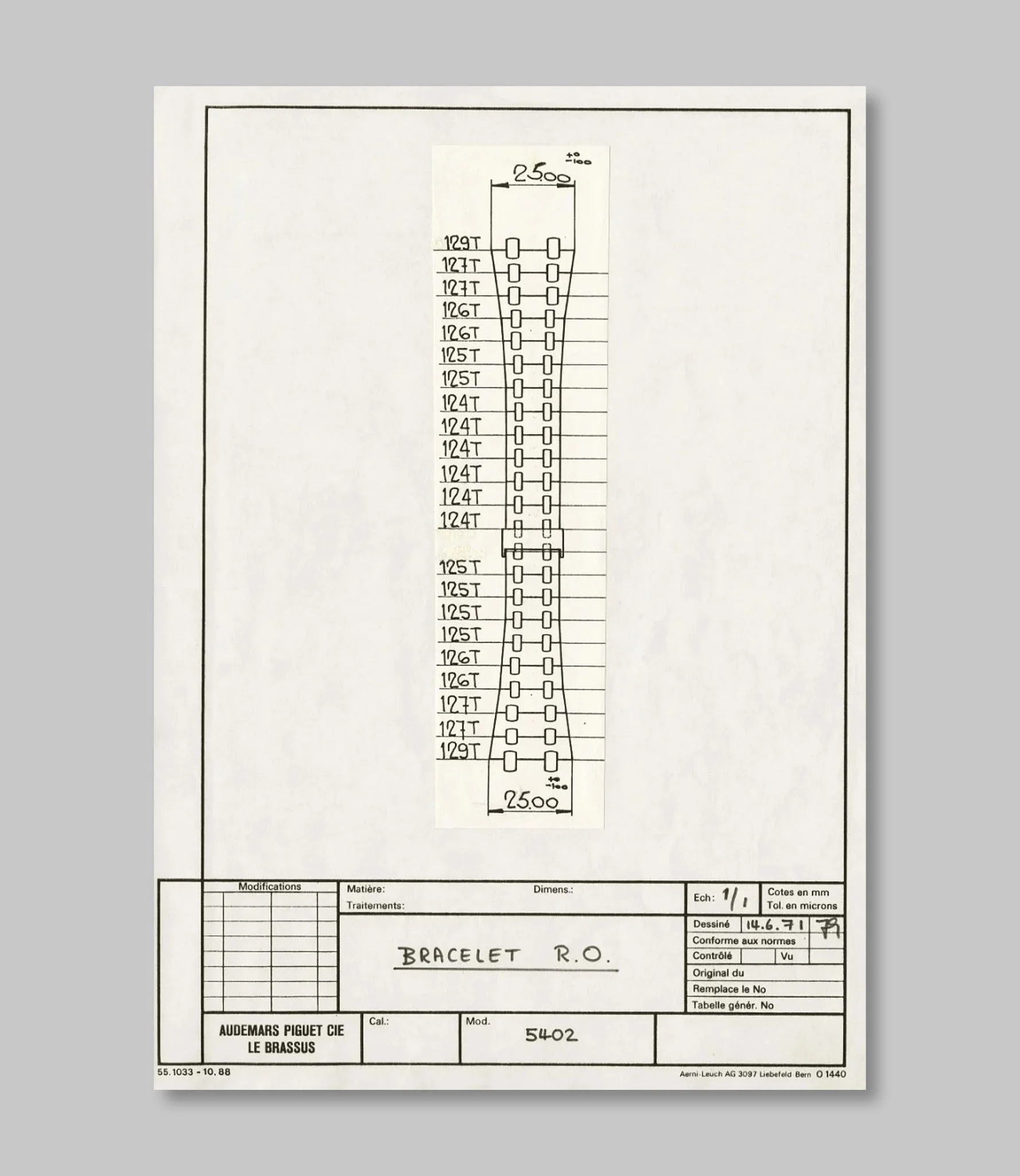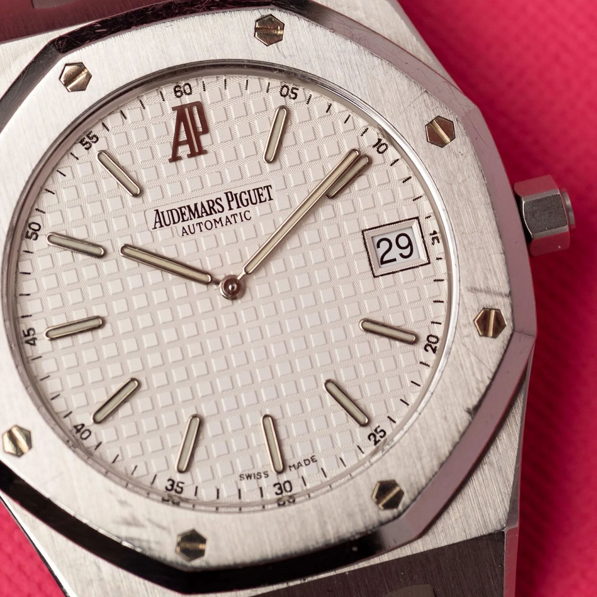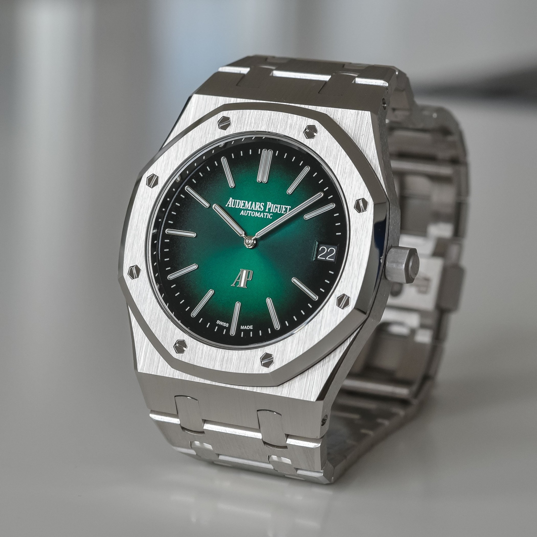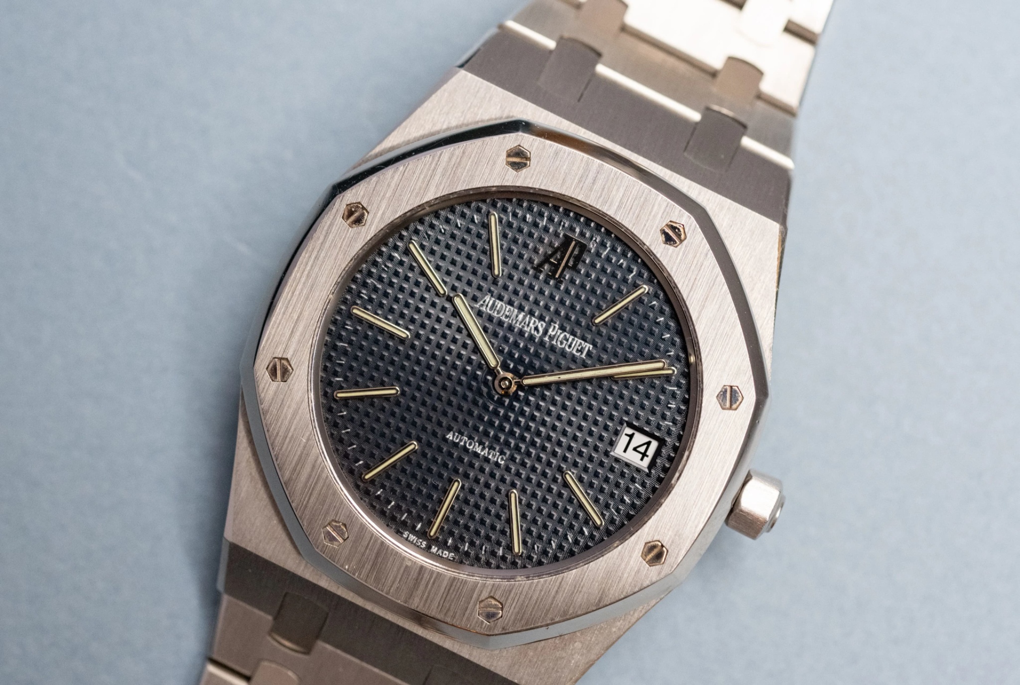 The Royal Oak reference 5402 is recognized as the original iteration of the model, introduced in 1972. This reference established the design language that would define the Royal Oak collection, characterized by its integrated bracelet and octagonal bezel secured by visible screws. It was initially presented as a luxury sport watch, distinguishing itself through its material and finishing in a period dominated by more traditional dress watch aesthetics. The 5402 was produced in various series, with the A-series being the earliest and most sought after by collectors.