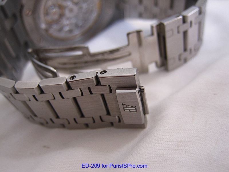 The bracelet is the standard bi-fold deployant in stainless steel. It has the signature alternating brushed and polished finish of the Royal Oak. The clasp is release by sliding the rectangular button. As many other AP Royal Oak owners have done, I’ve swapped the bracelet over to the opposite side because it places the deployant in a more comfortable position on my small wrist. I personally prefer a double deployant with a side pushing button (like on my previous Royal Oak Dual Time 26120) but in my opinion the bracelet I have pretty comfortable. I wonder if the new 15202 with the double folding clasp would work with my 25829?