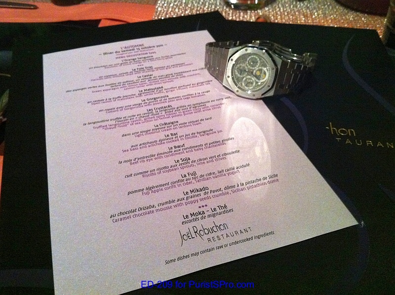 I’ve worn this AP Royal Oak perpetual calendar skeleton as my daily watch for slightly under a year and has been my companion on some fun trips. We had a celebration birthday dinner at the Joel Robuchon restaurant inside the MGM Grand Las Vegas for an amazing 16 course dinner: