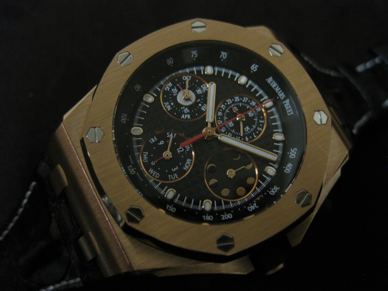 Thanks for taking the time to post these excellent pics. The 39mm Jules Audemars selfwinding dial is absolutely hypnotic. I bet it's mesmerising in the flesh. The Offshore calendar's are just... well, glorious. AP are getting better & better at dial layout's. But I wonder how the bezel on the gold version came to be scratched? Thanks again.
