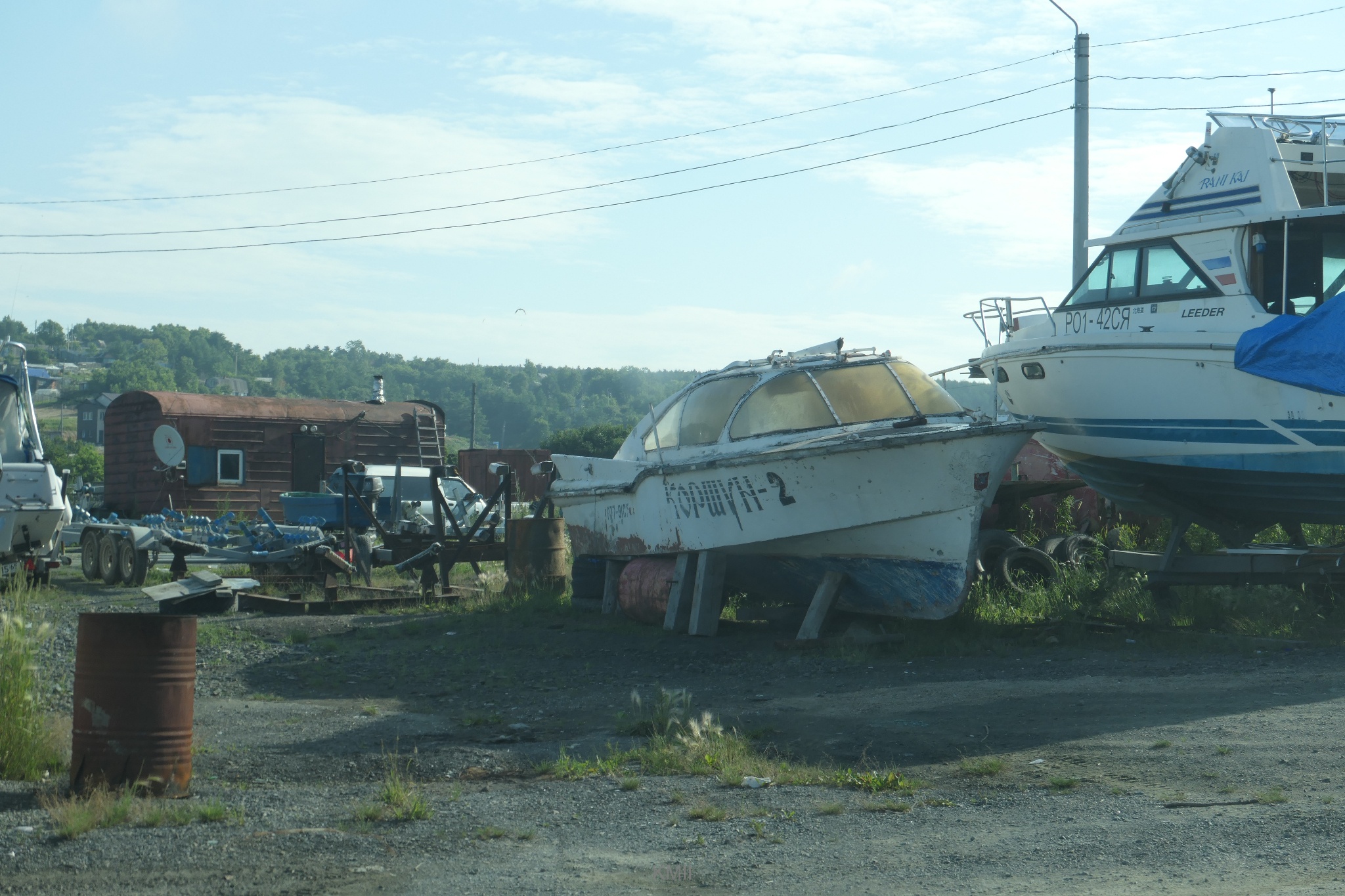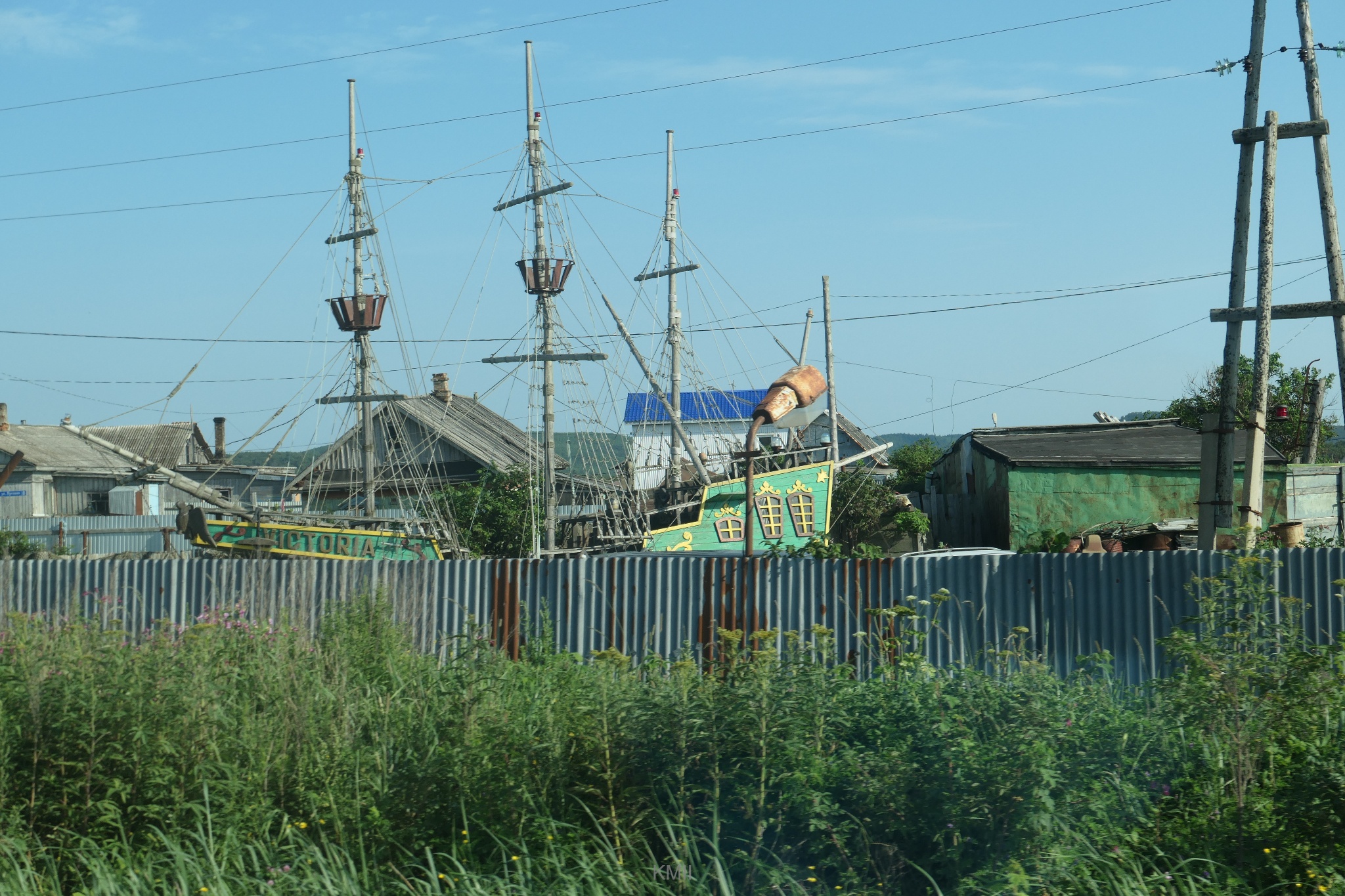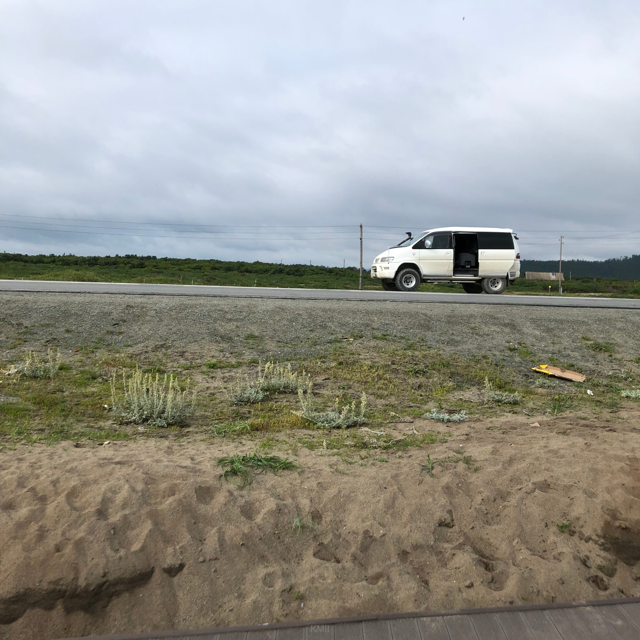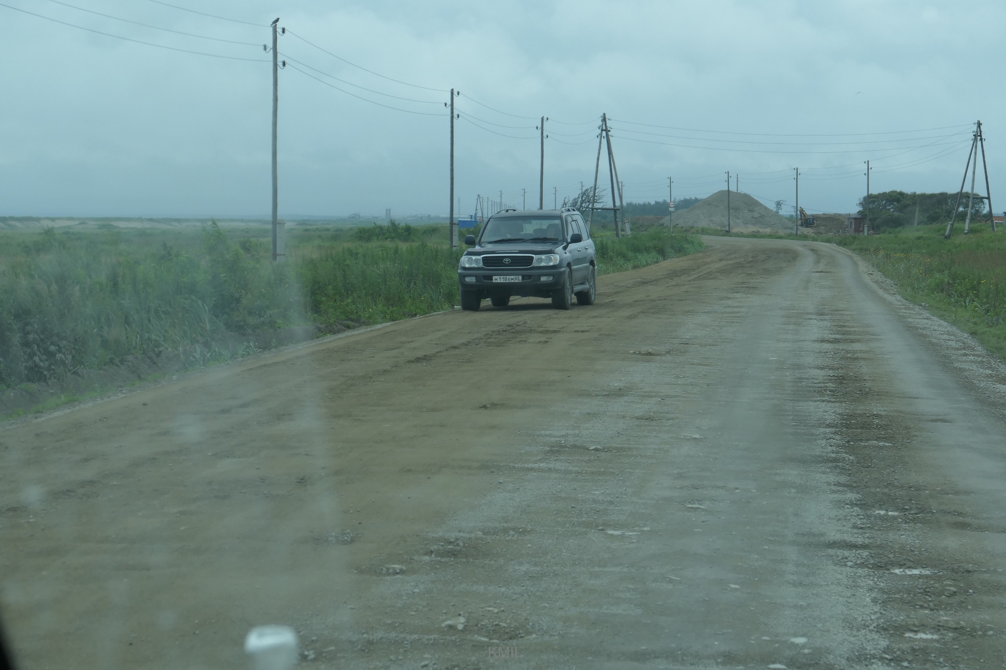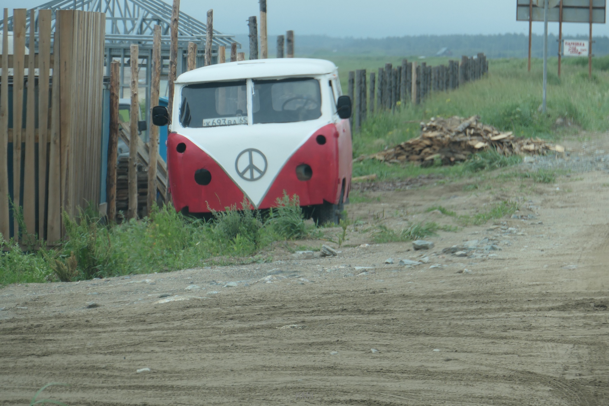Driving on Sakhalin is a mixture of of some tarmac stretches close to the major towns and plenty of dirt roads elsewhere. At some stretches close to the shore there is a wooden fence separating the road from the beach.