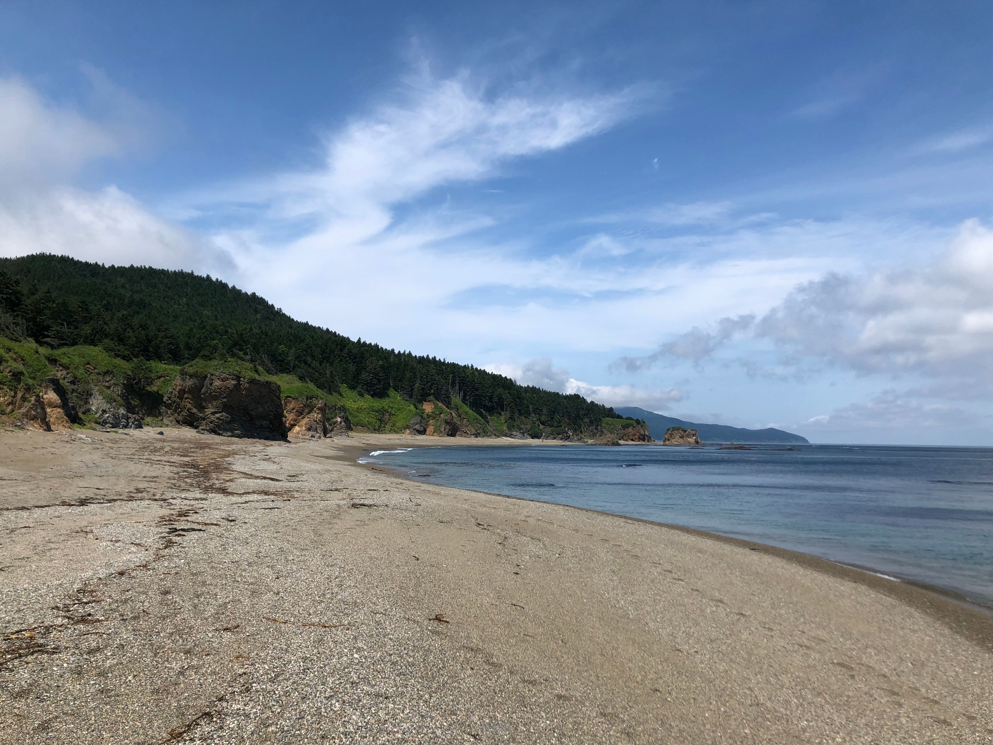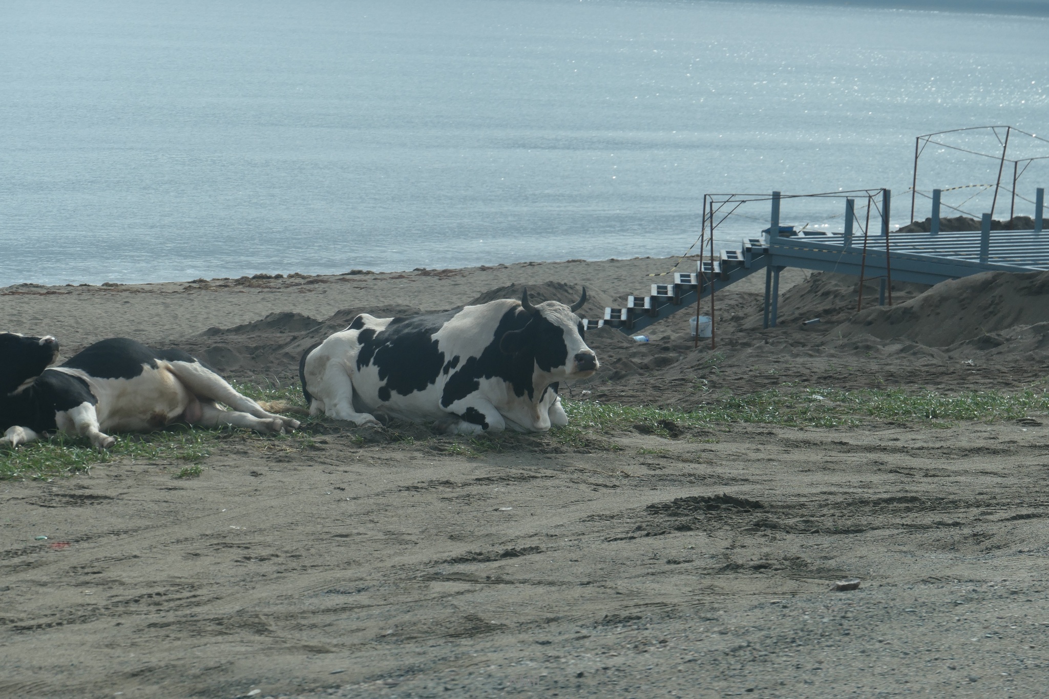 While not all locals enjoy swimming in the Sea of Okhotsk, cows seem to enjoy the beach and the odd swim π