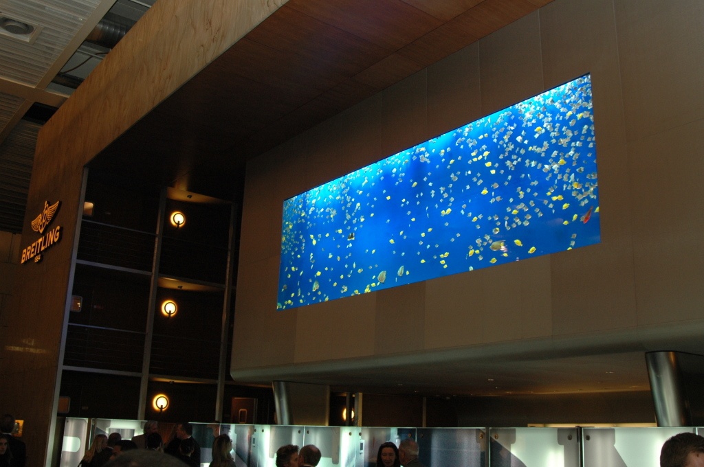 A big attraction from The Breitling booth is its large fish tank.