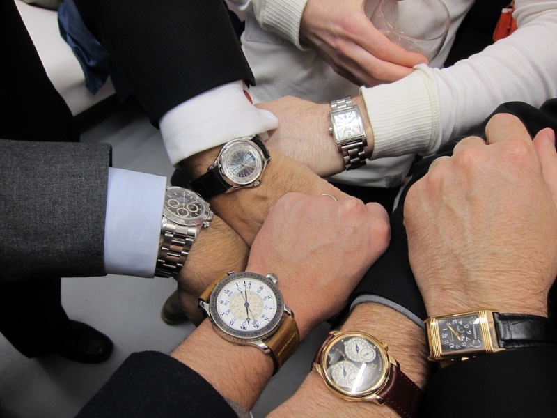 A few final places to visit on this outing. A brand that needs no introduction. The Bullhead. A classic Seventies design. Back in black. A fellow Purist shows something he brough himself - model's own. It's starting to get busy in here. Time to retreat to a quiet area in back. You may have heard of this manufacturer. Perhaps I could interest you in something for the weekend sir? Cash or plastic sir? Thanks to our hosts at Watches of Switzerland.