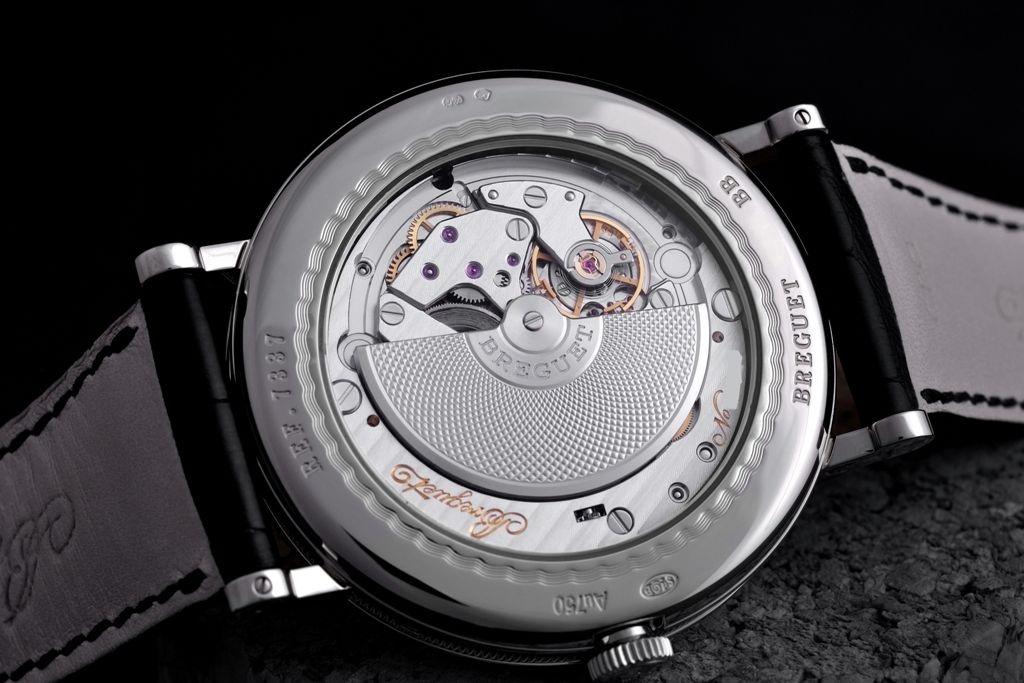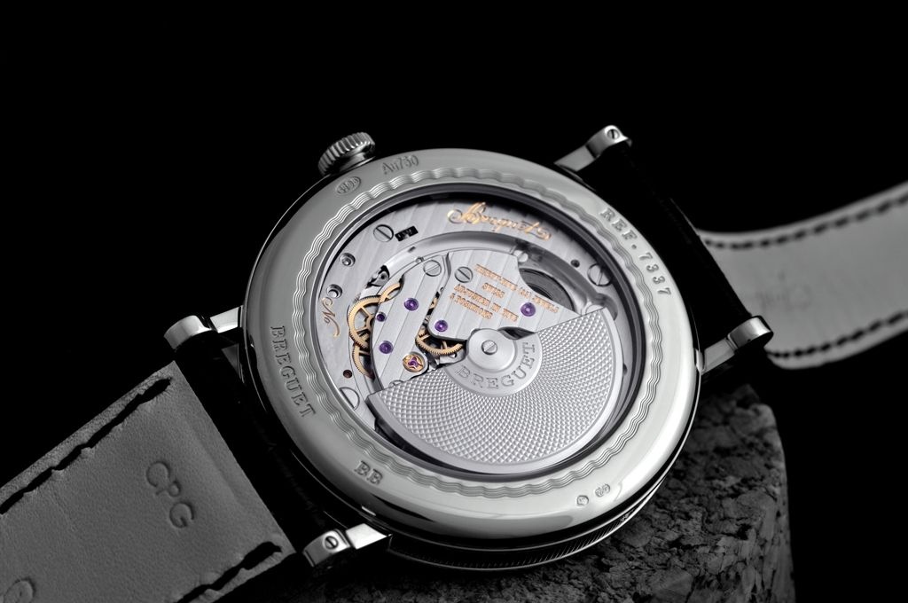 The movement is the automatic cal. 502.3 QSE1 which is based on an original F. Piguet design but completely internalized and improved by Breguet with, amongst others, a frequency increase from 2.5 to 3hz and the use of silicon for the balance spring … and nicely finished.