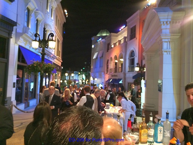 Cocktails and hors d'oeuvres were served outside on the cobblestone walkway of Via Rodeo. Perfect Southern California weather made for a comfortable evening to stroll along the streets of Beverly Hills. Guests of the Breguet event were encouraged to walk along Via Rodeo to discover the refreshments and beautifully plated dishes. The signature cocktail of the evening was appropriately named The Tourbillon and made with bourbon, ginger beer, and a squeeze of lime juice. Several stations were set u