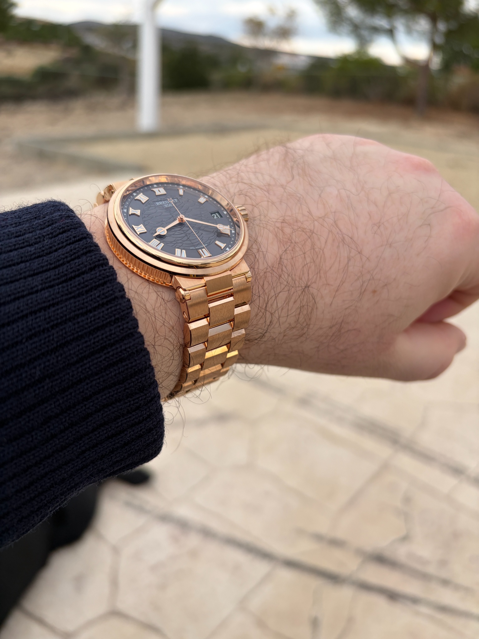 This is my only second full gold watch (that is, with the matching bracelet) as such combos very often may prove to be over the top for socially comfortable wearing. And this Breguet combo being mainly brushed - in my view this makes it actually wearable. My first full gold watch was also off the beated path one - Omega Seamaster 300 (not the Professional 300) in Sedna gold. I have missed it ever since I let it go years ago. Now I am consiering adding Omega Speedmaster 321 in Pt on a PT bracelet